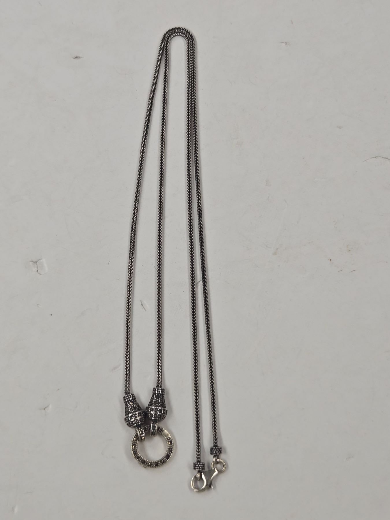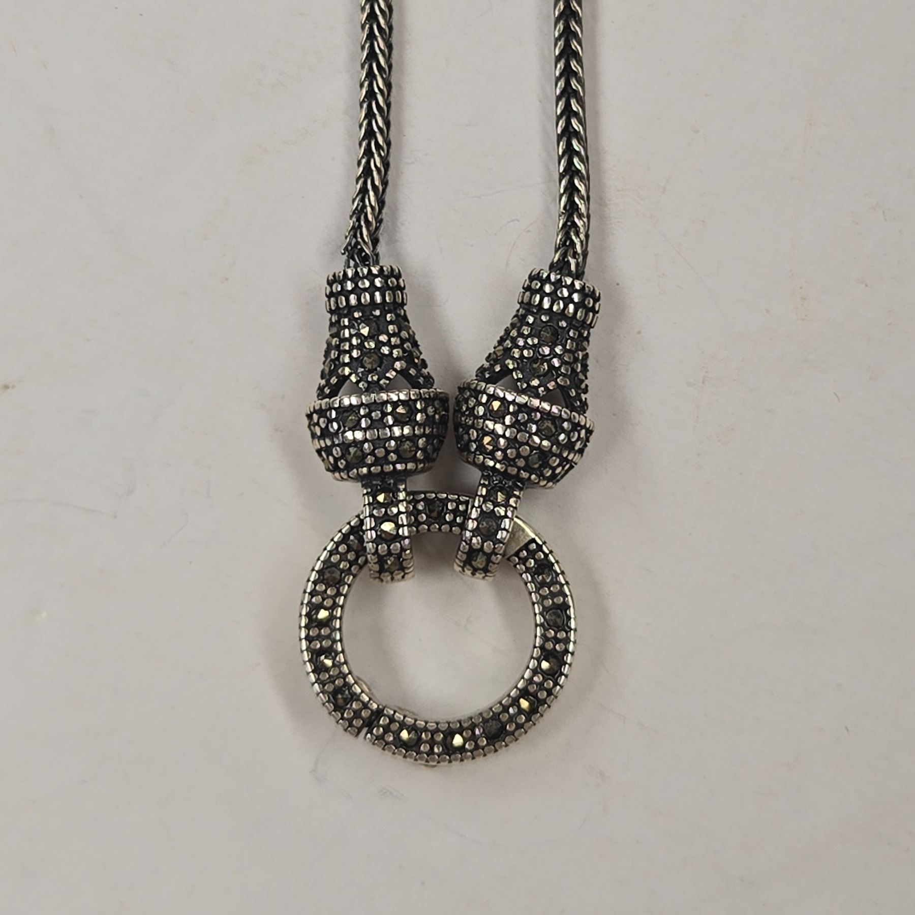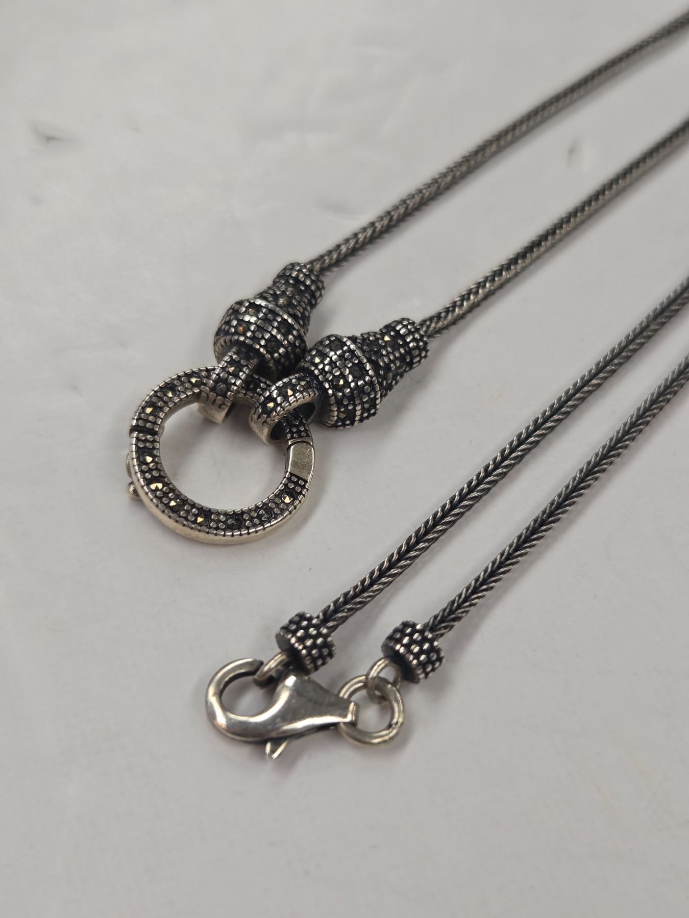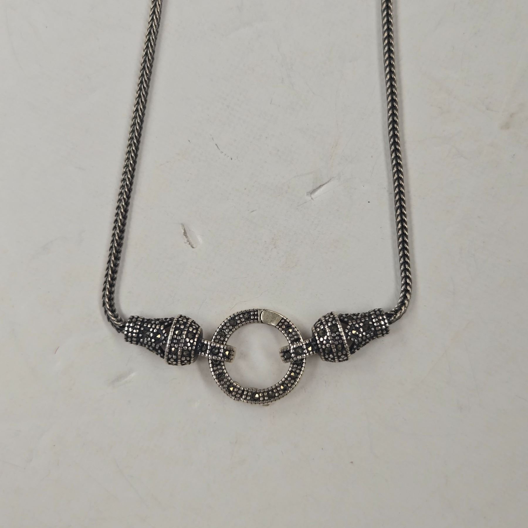 Sterling Silver & Marquisate Necklace - Center can be opened to hang additional pendant - Total weight: 10.8 grams