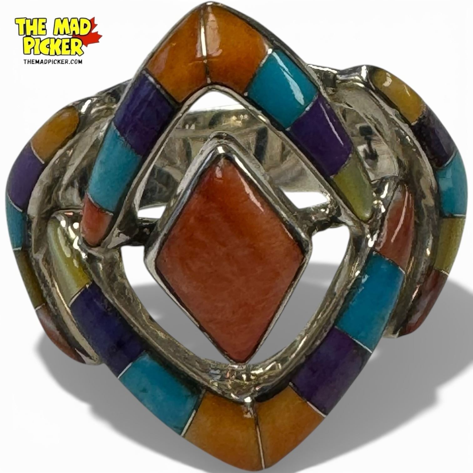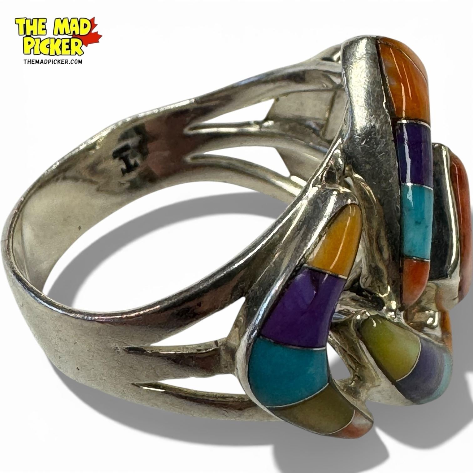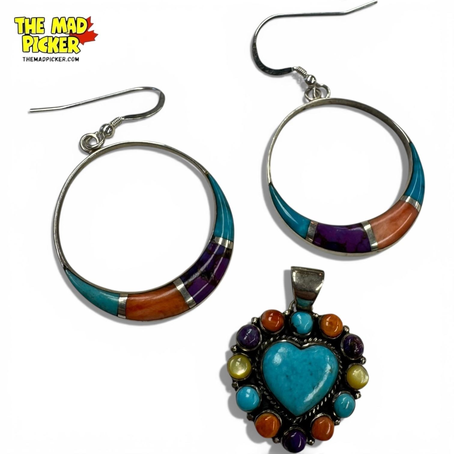 Sterling Silver Multi-Gemstone Inlay Ring, Pendant & Earrings - Total weight: 20 grams