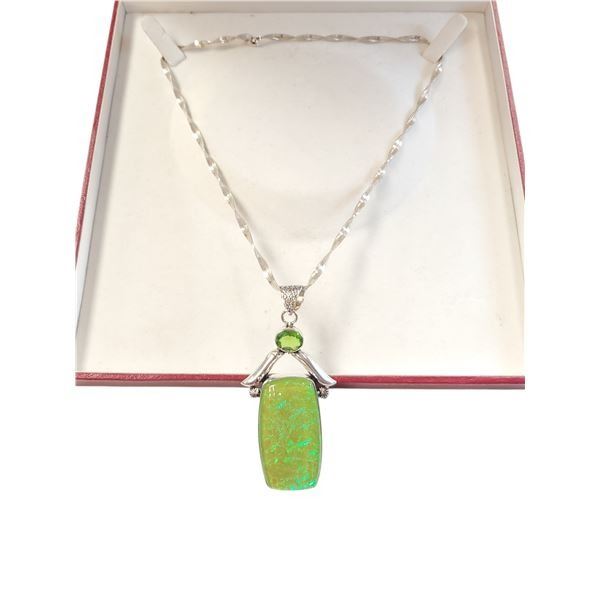 Sterling Silver Opal Triplet & Peridot Pendant on .925 Italy Chain (18") - Pendant is 1.5" x 3" - Total weight: 27.6 grams