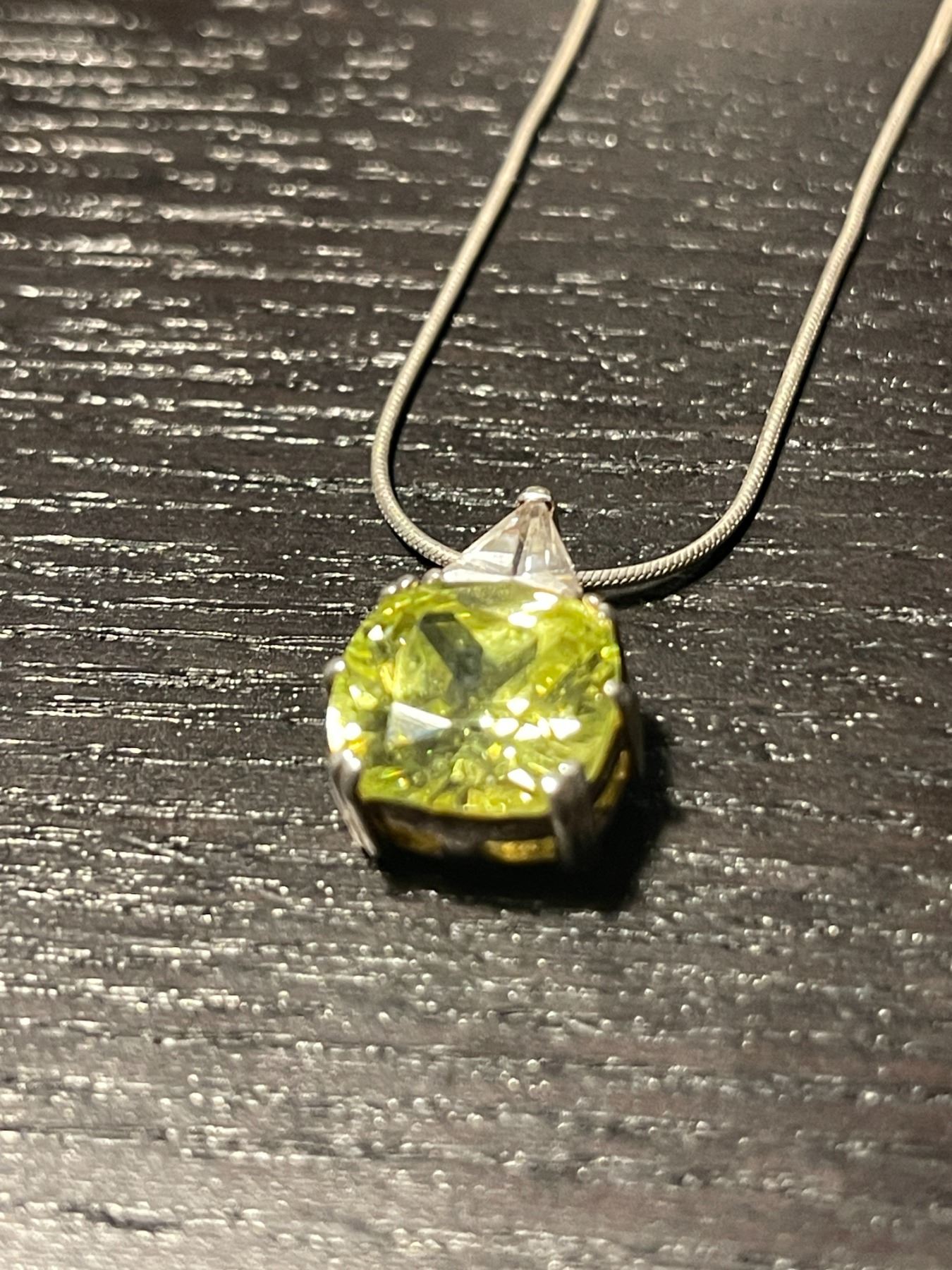 Sterling Silver Peridot Crystal Necklace - 12mm diameter stone - 18" chain