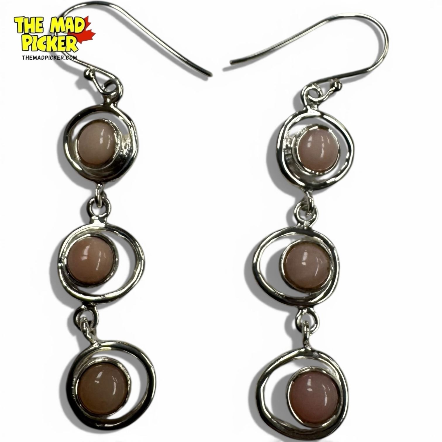 Sterling Silver Pink Andean Opal Earrings & 2 Rings - Sizes 8 and 10 - Total weight: 20.7 grams