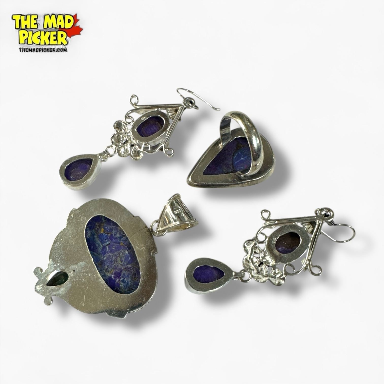 Sterling Silver Purple Turquoise Ring, Pendant & Earrings (Ring is 33 mm wide) - Total weight: 22.2 grams