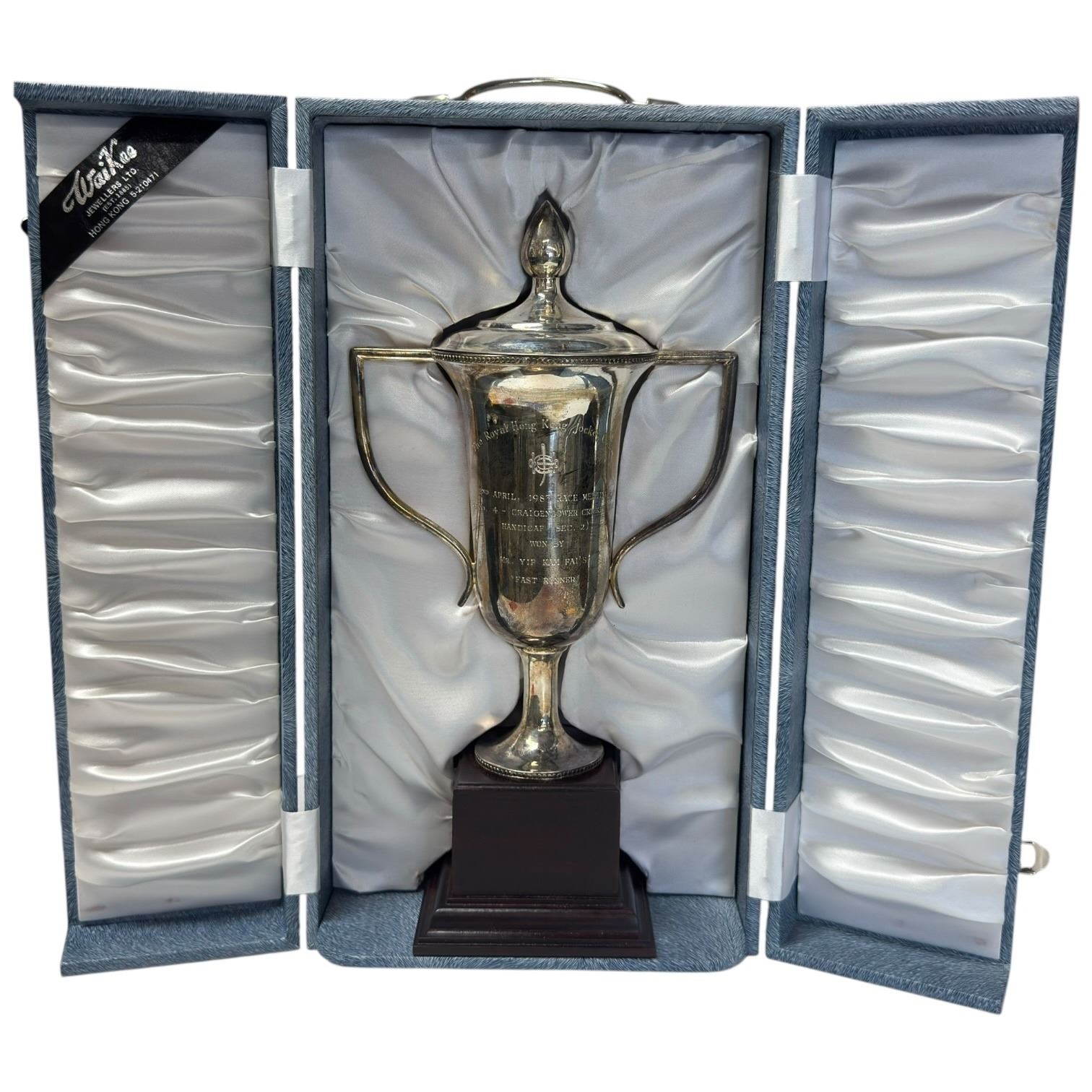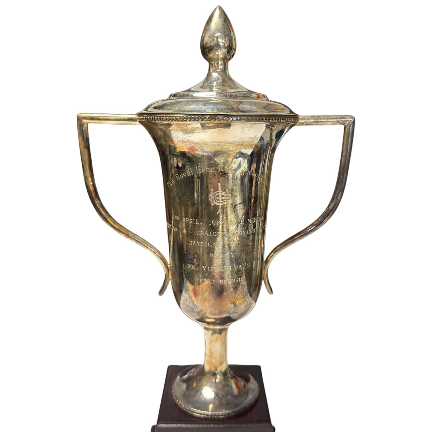 Sterling Silver Trophy * Royal Hong Kong Jockey Club 1983 "Fast Runner" * Weight of trophy when base is removed: 334 grams