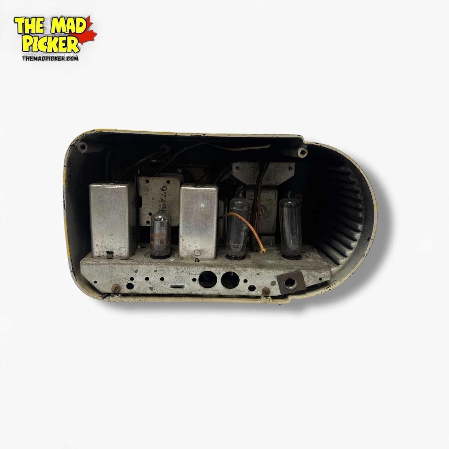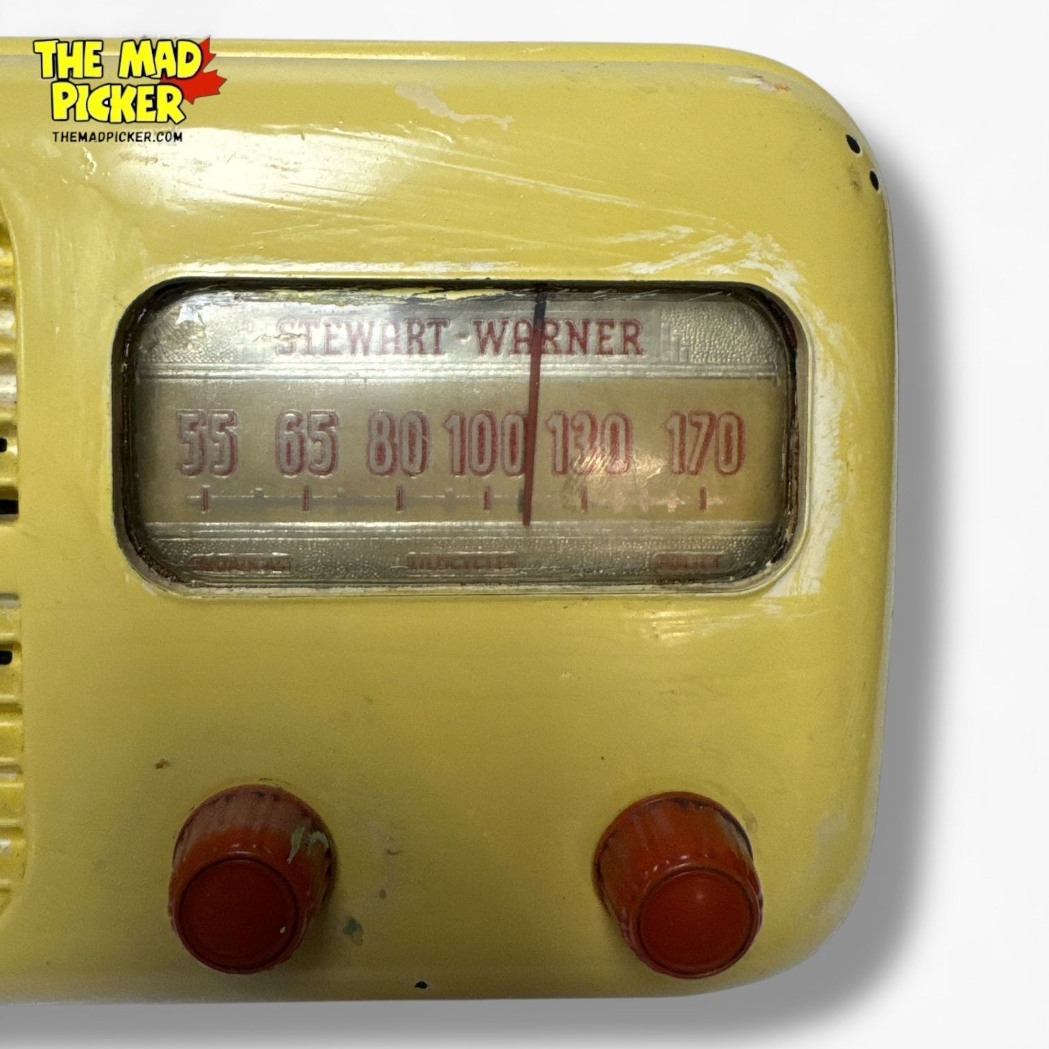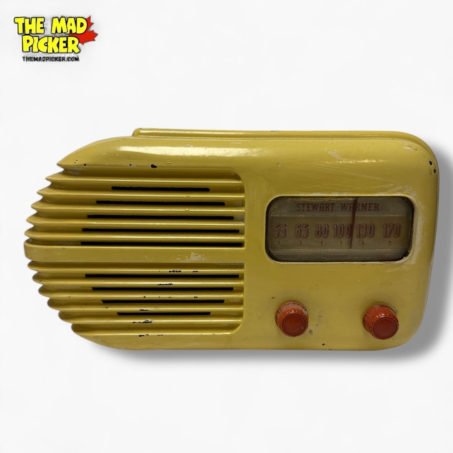 Stewart-Warner R-552 'Bullet' (or 'Campus') tube radio, produced in 1941 by Stewart-Warner Corporation. Features midget-style design with rounded aerodynamic shape and horizontal grille slats. Constructed from painted Bakelite. Includes 5-tube or 6-tube superheterodyne AM circuit.