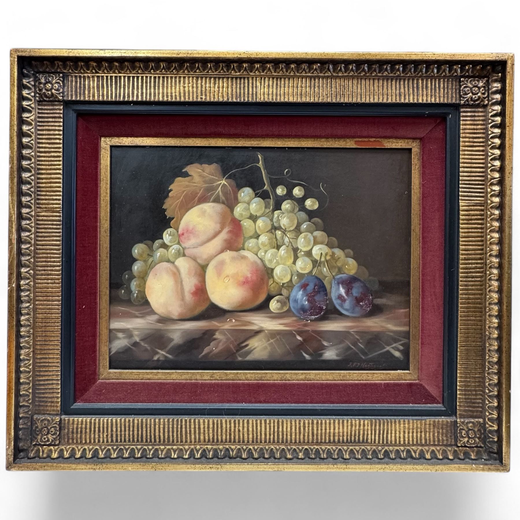 Still Life on Board of Peaches, Grapes and Plums * Signed J.F.J. Nagtegaal" 1920-2000 (Framed dimensions: 25" x 21")