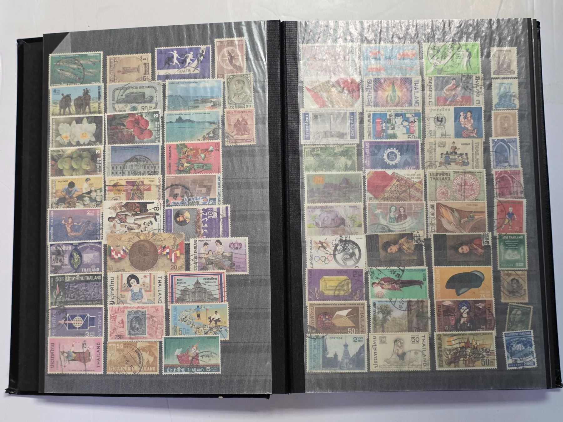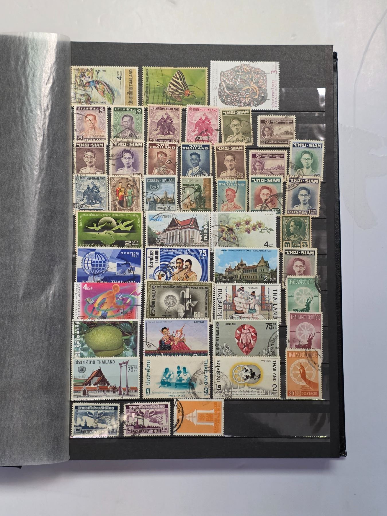 Stock Book with 3 1/2 Pages of Vintage Thailand and Island Stamps * Used