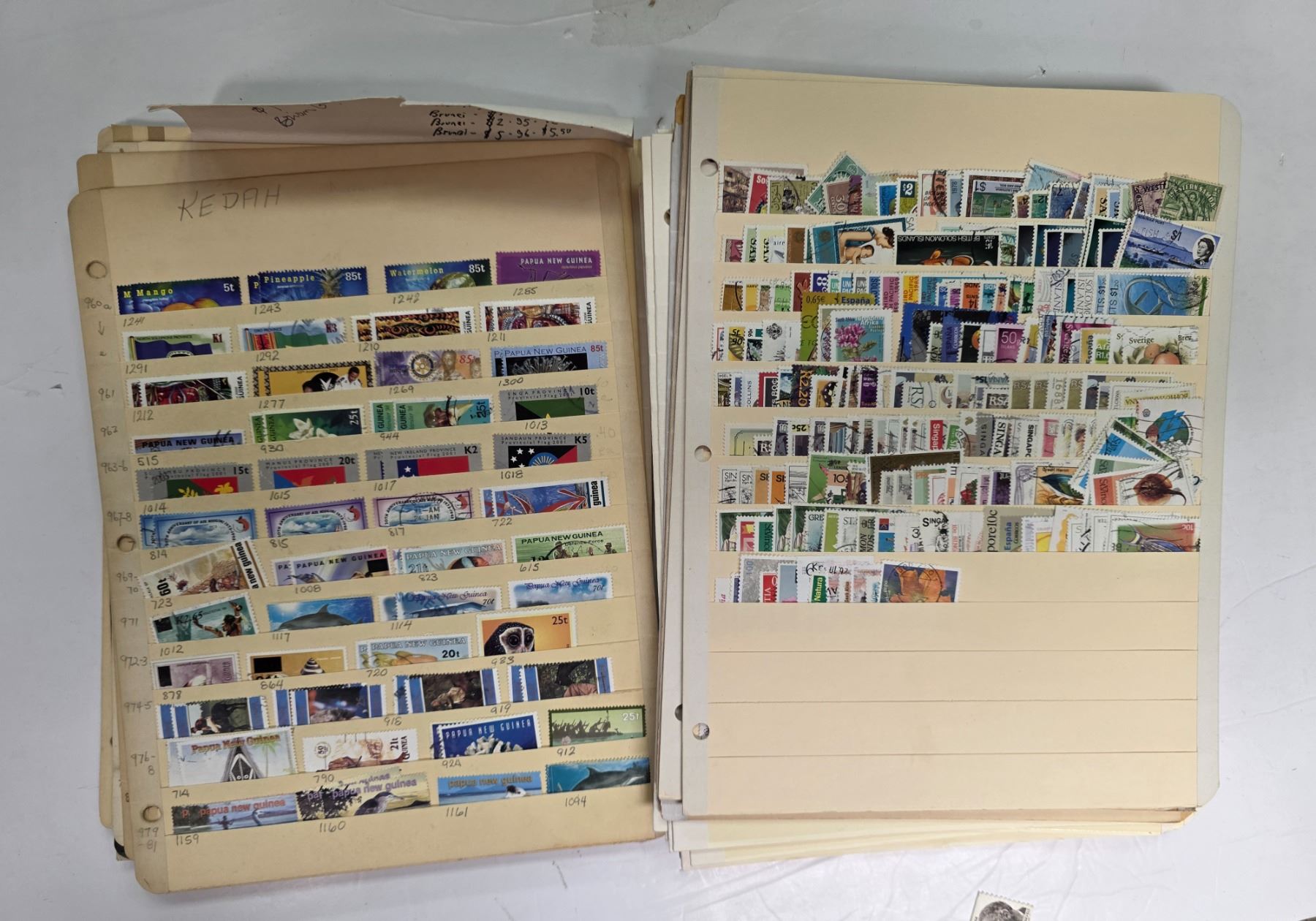 Stock Pages of Assorted World Stamps, Including 1982 Brisbane Commonwealth Games Postmarked First Issues * Majority are used