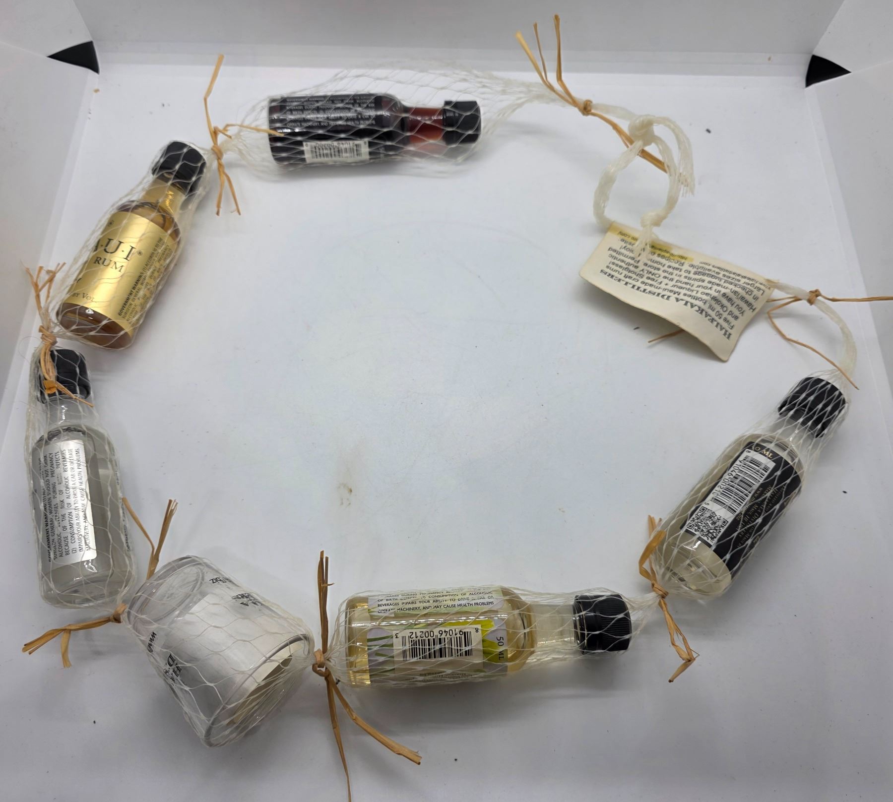 String of 5 x 50ml Maui-made Craft Rums & Okolehao Liqueur with Shot Glass - All sealed and full
