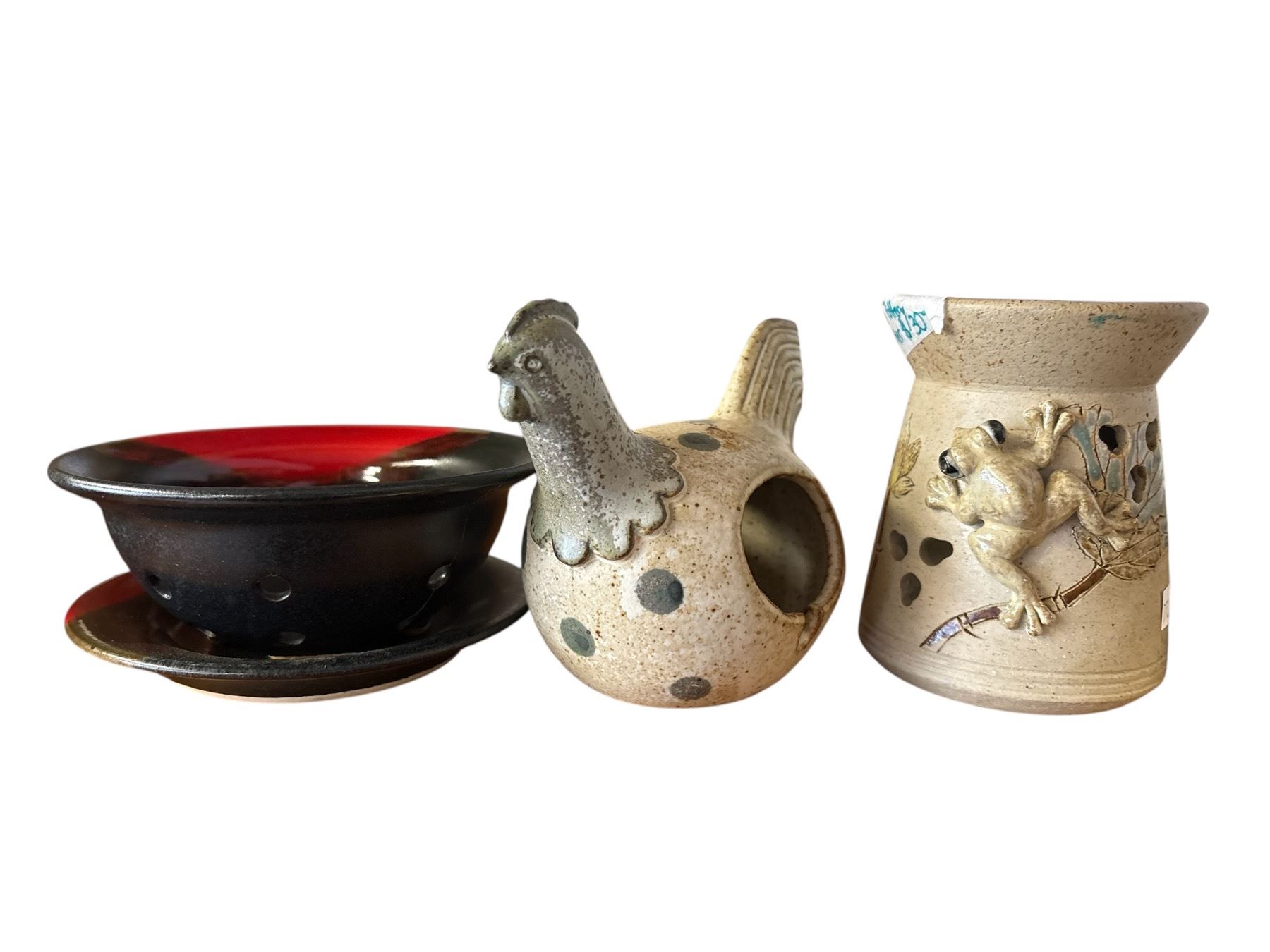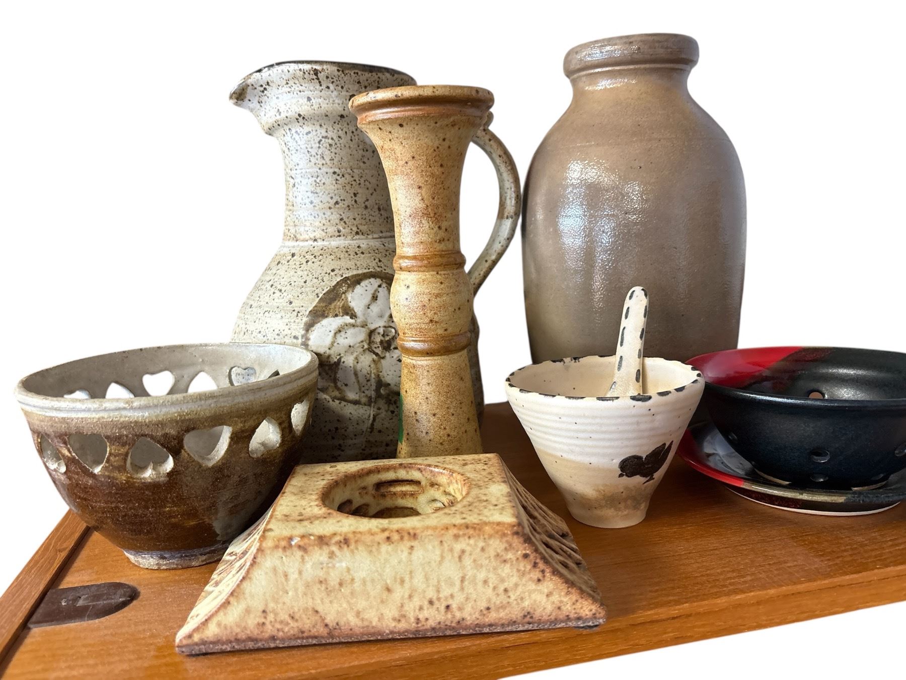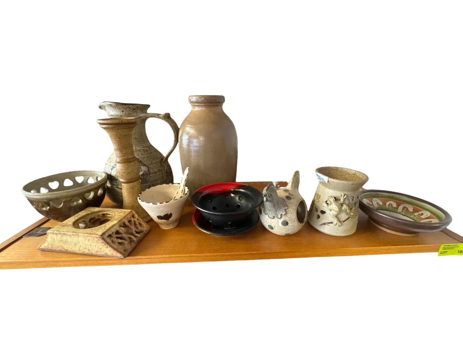 Collection of various studio pottery pieces, most signed by the artists. Includes multiple styles and forms, with the tallest piece measuring 9.5 inches in height. Item is as pictured.