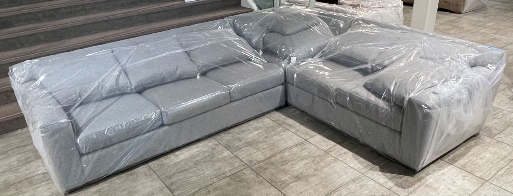 Stylus - BNIB Elon Sectional Sofa - Penny Lane Silver, H29" x W122" x D98"