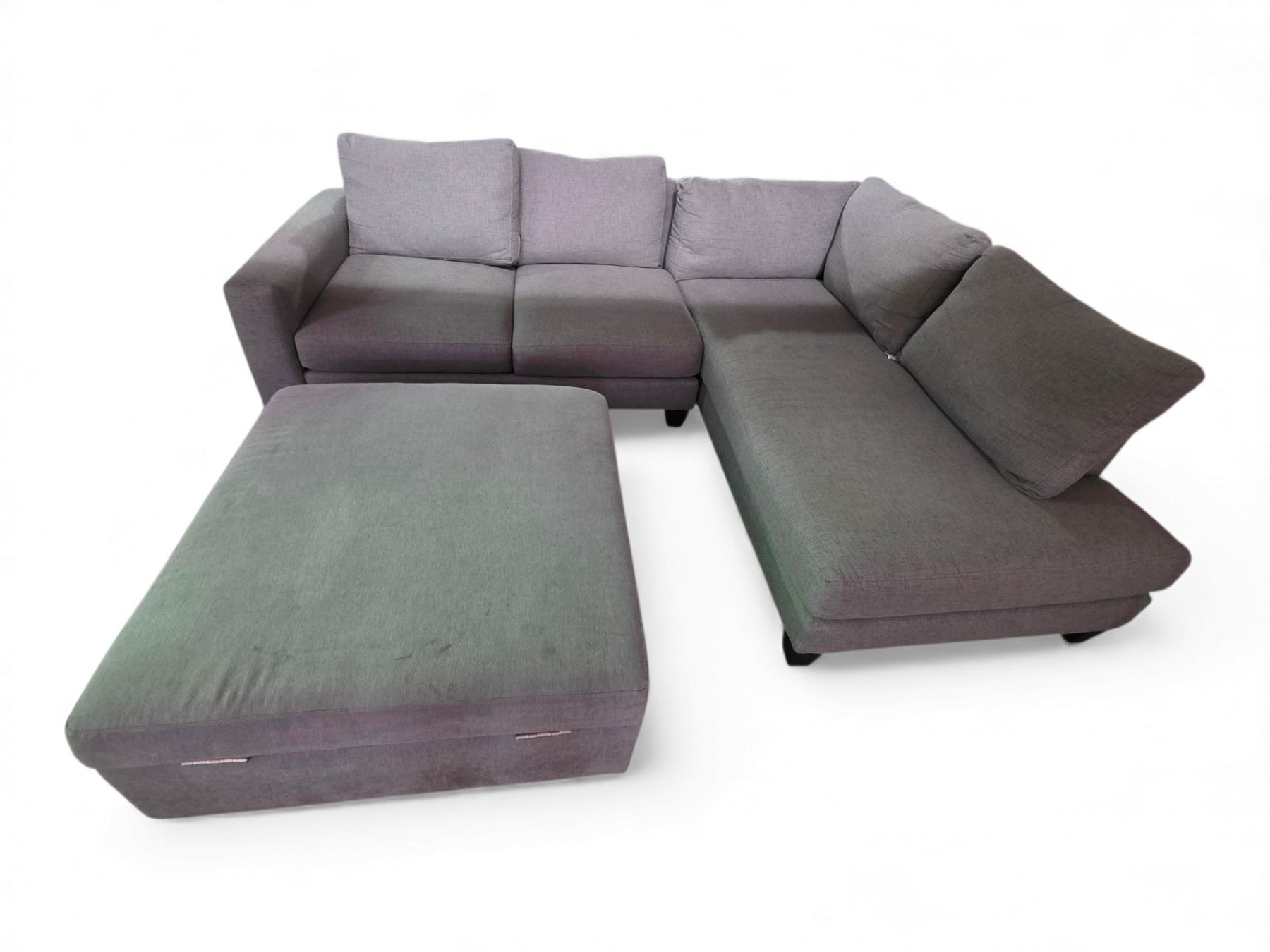 Stylus Contemporary Sectional Sofa with Storage Ottoman - Gray
