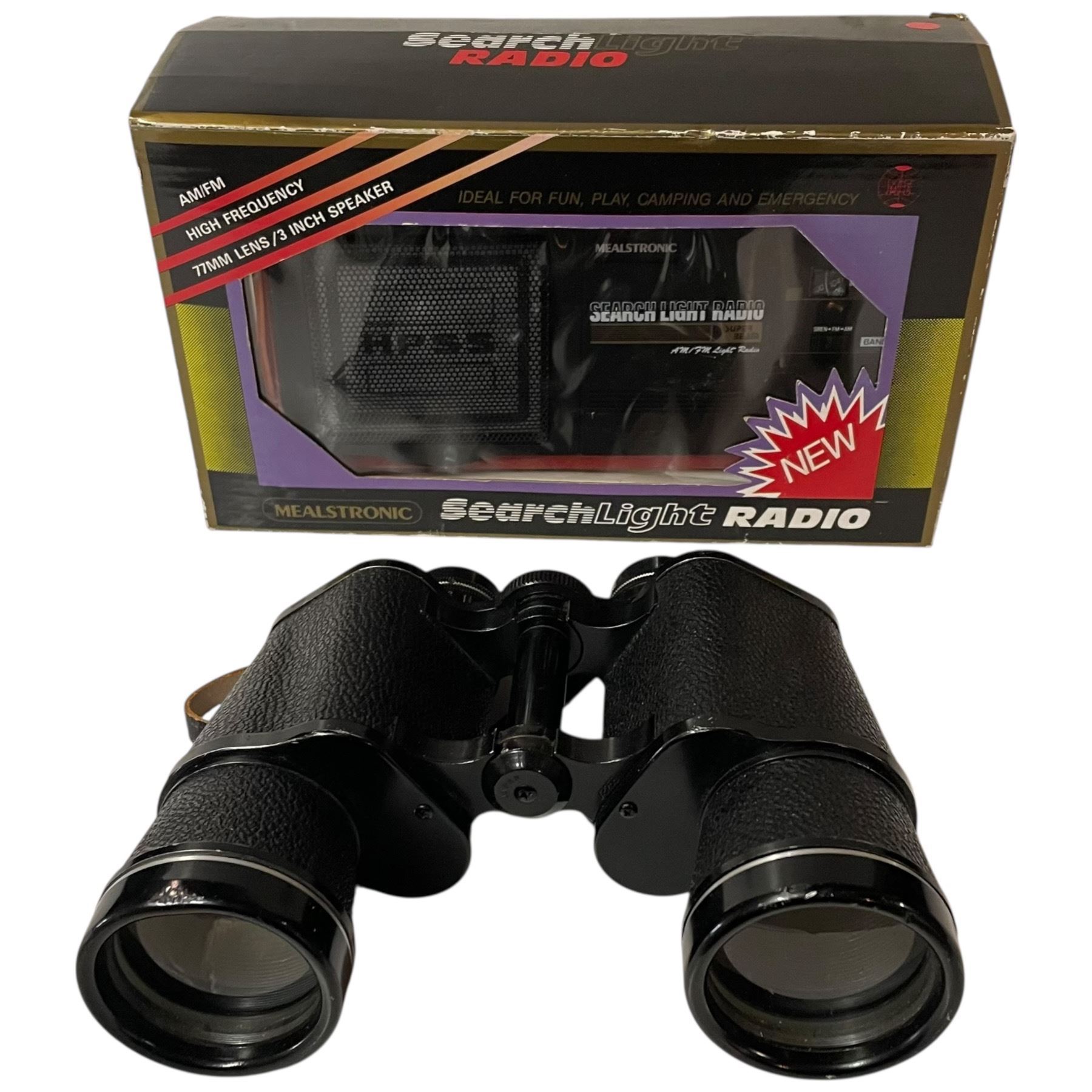 Sunset 10x50 Binoculars and Search Light Radio in Box
