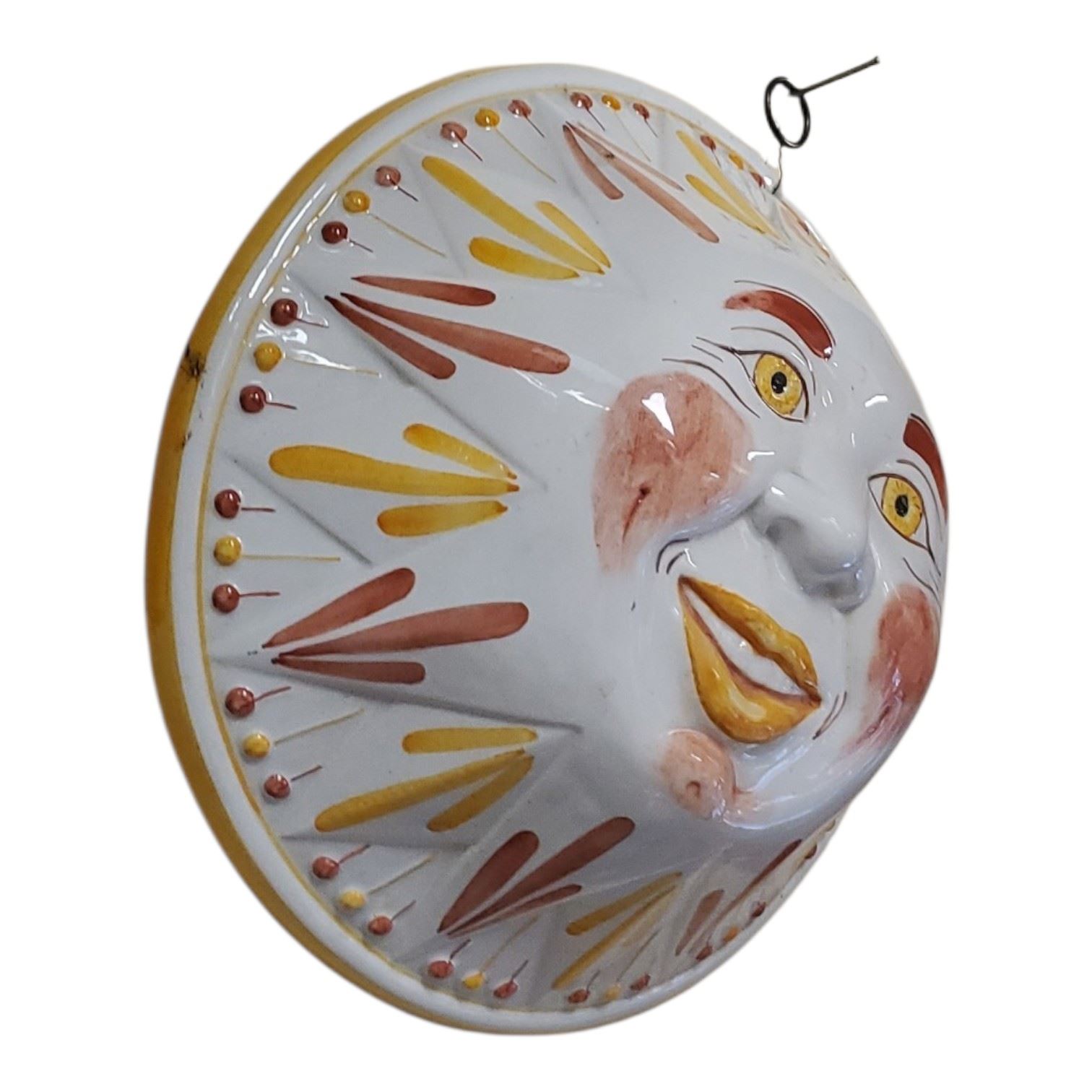 Sunvintage wall hanging decorative bowl with Italian-style sun motif. Painted design with vibrant detailing across the 10.5-Inch diameter surface. Features hanging hardware for wall display. Item is as pictured.