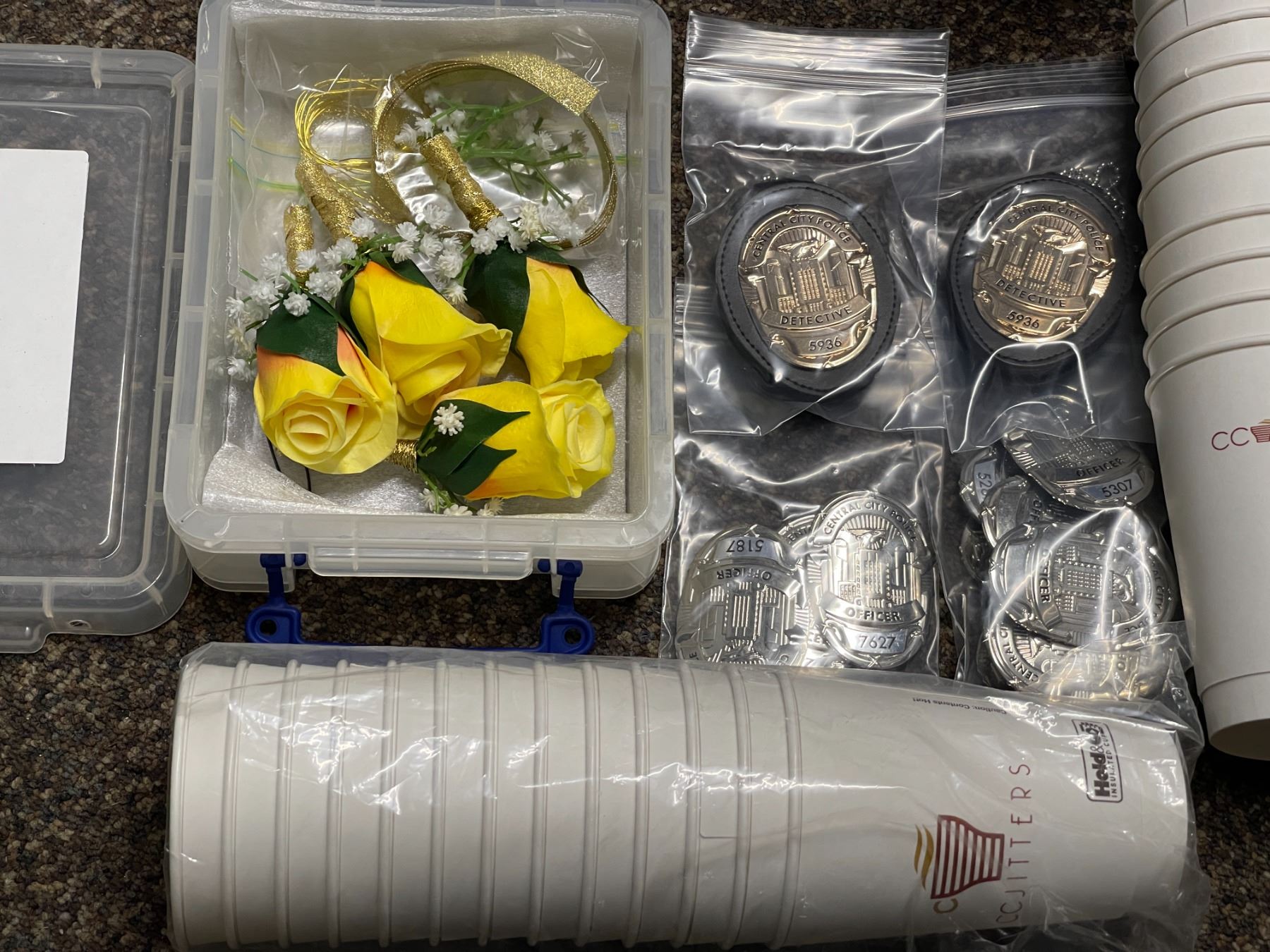 Supergirl CC Jitters Cups, Big Belly Cups, Police Badges, Wedding Flowers