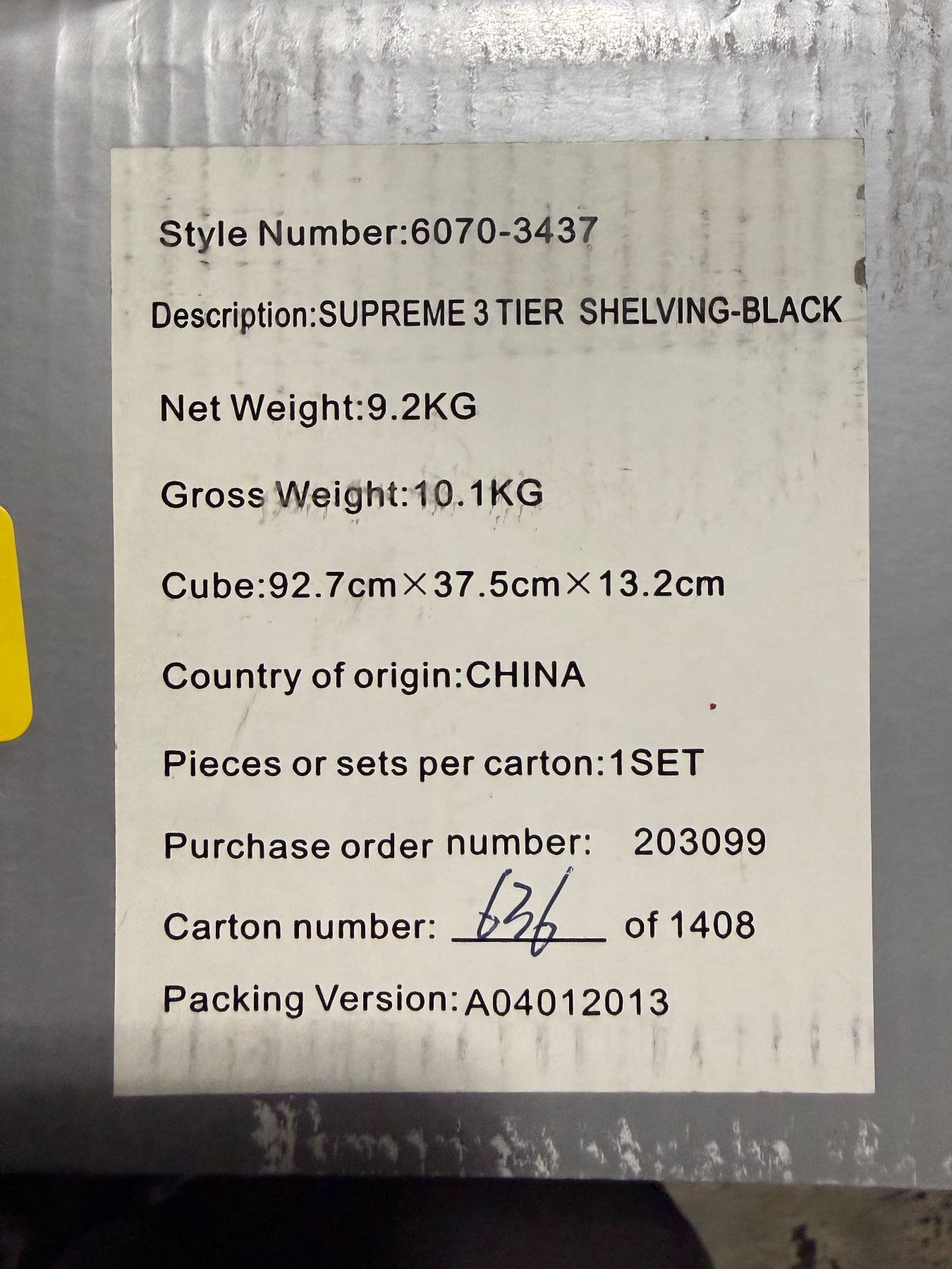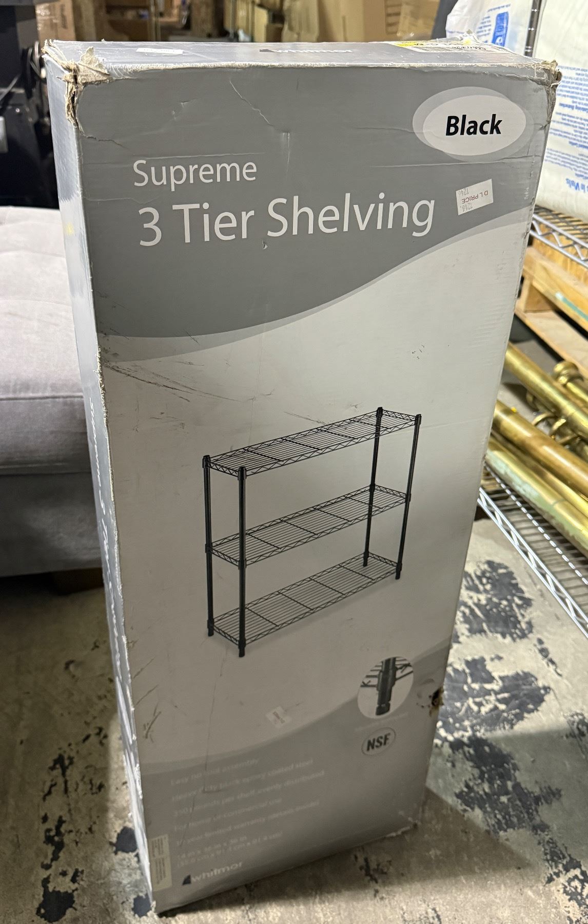 Supreme 3 Tier Metal Shelving Black - Approx 14" x 36" x 36"