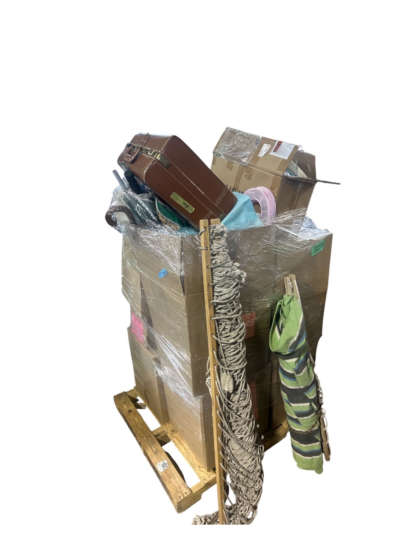 Surprise Pallet of Misc Set Dec - Suitcase, Umbrella, Blankets, Cookware, Etc.