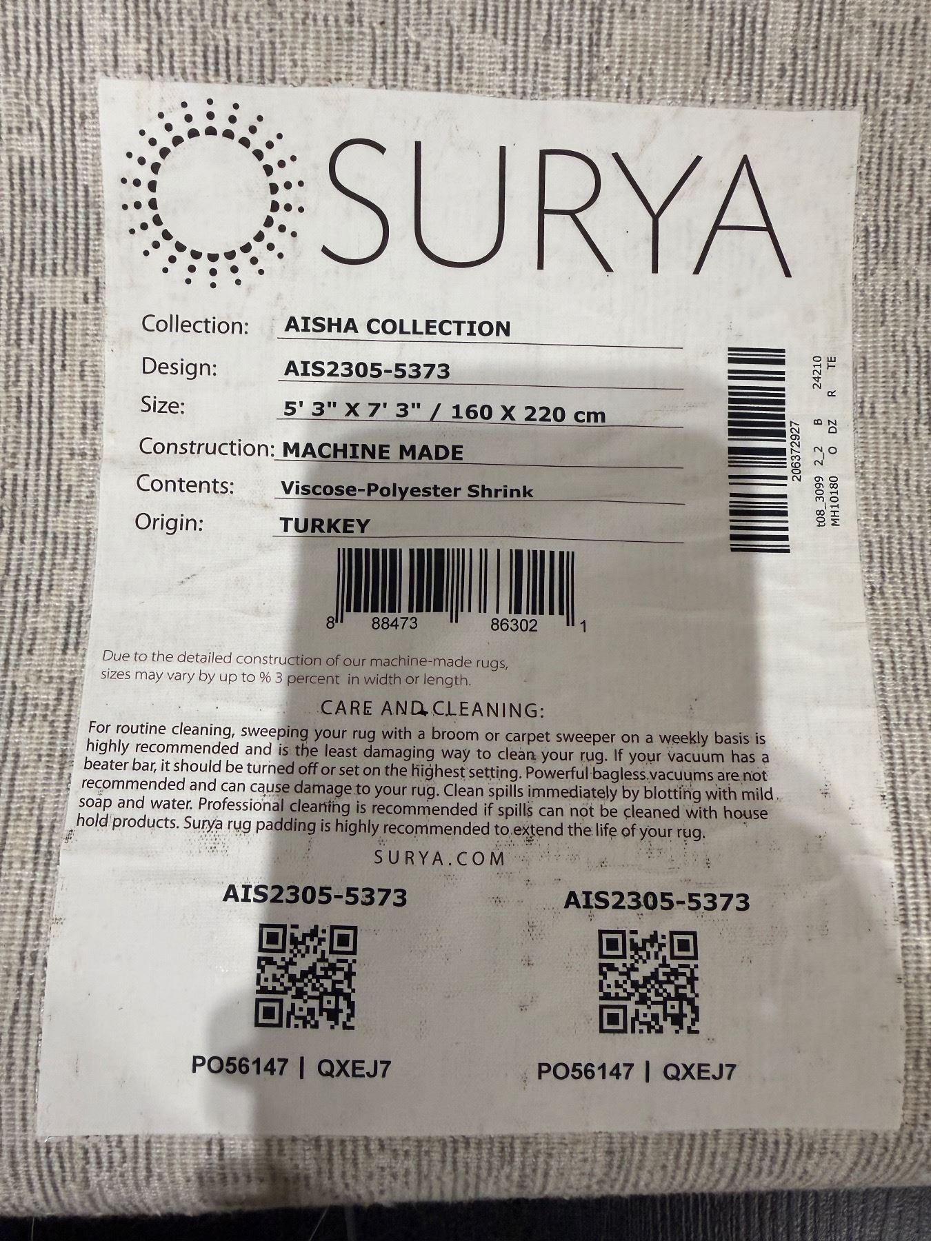 Surya Aisha Collection Abstract Textural Area Rug - Approx 64in x 84in