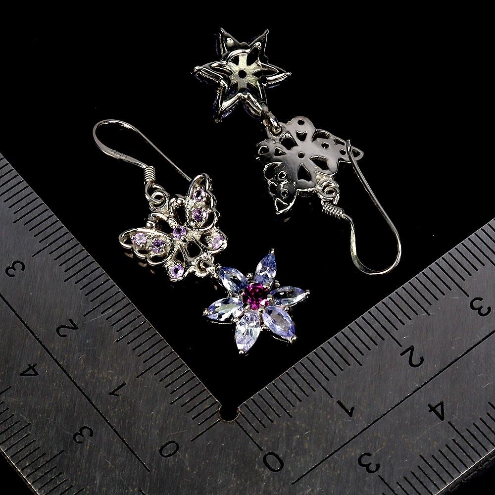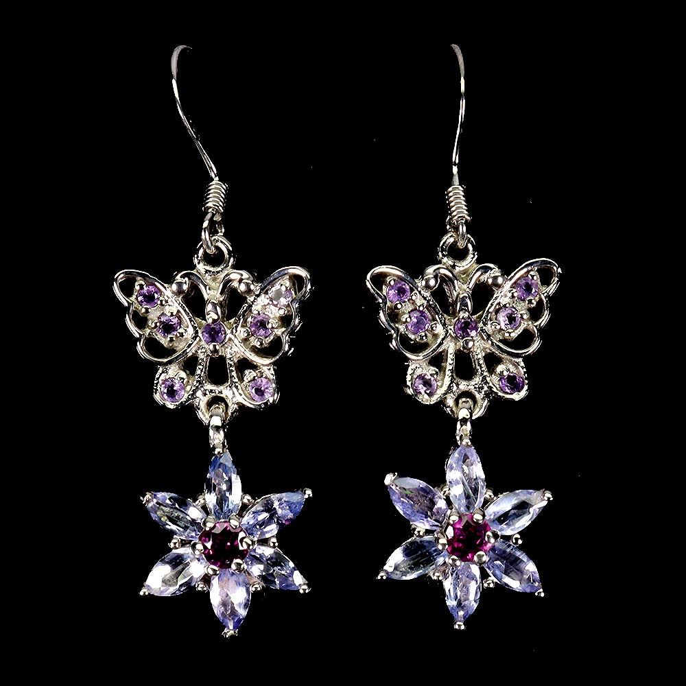TANZANITE AND AMETHYST EARRINGS IN 14K WHITE GOLD PLATED OVER 925 STERLING SILVER - PPRAISED REPLACEMENT VALUE CAD 980