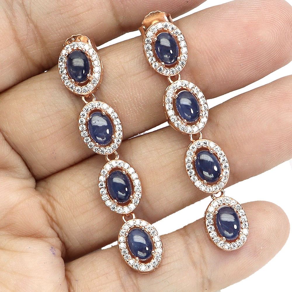 TANZANITE AND CZ EARRINGS IN 14K ROSE PLATED GOLD OVER 925 STERLING SILVER - APPRAISED REPLACEMENT VALUE CAD 880