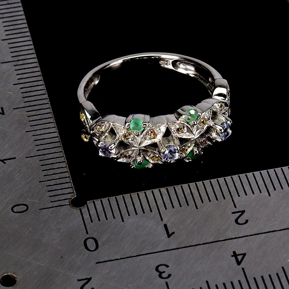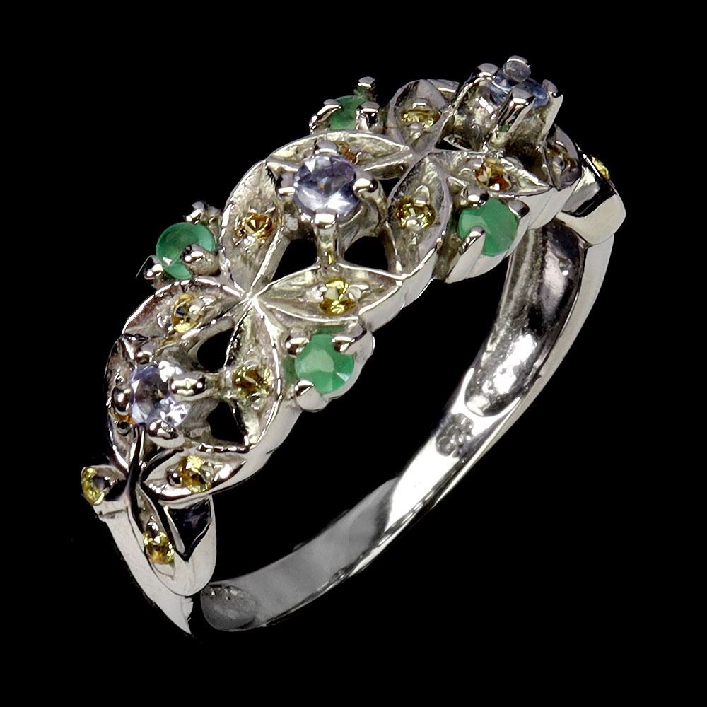 TANZANITE, EMERALD AND SAPPHIRE RING IN 14K WHITE PLATED GOLD OVER 925 STERLING SILVER - SIZE 7 - APPRAISED REPLACEMENT VALUE CAD 815