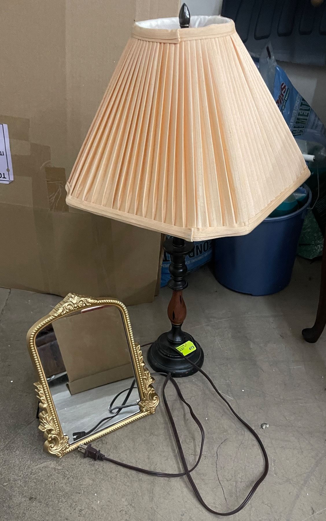 Table Lamp and Vintage Mirror with Easel Back (Mirror is 10" x 12")
