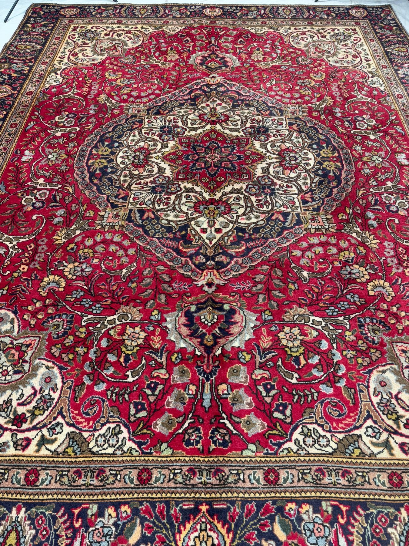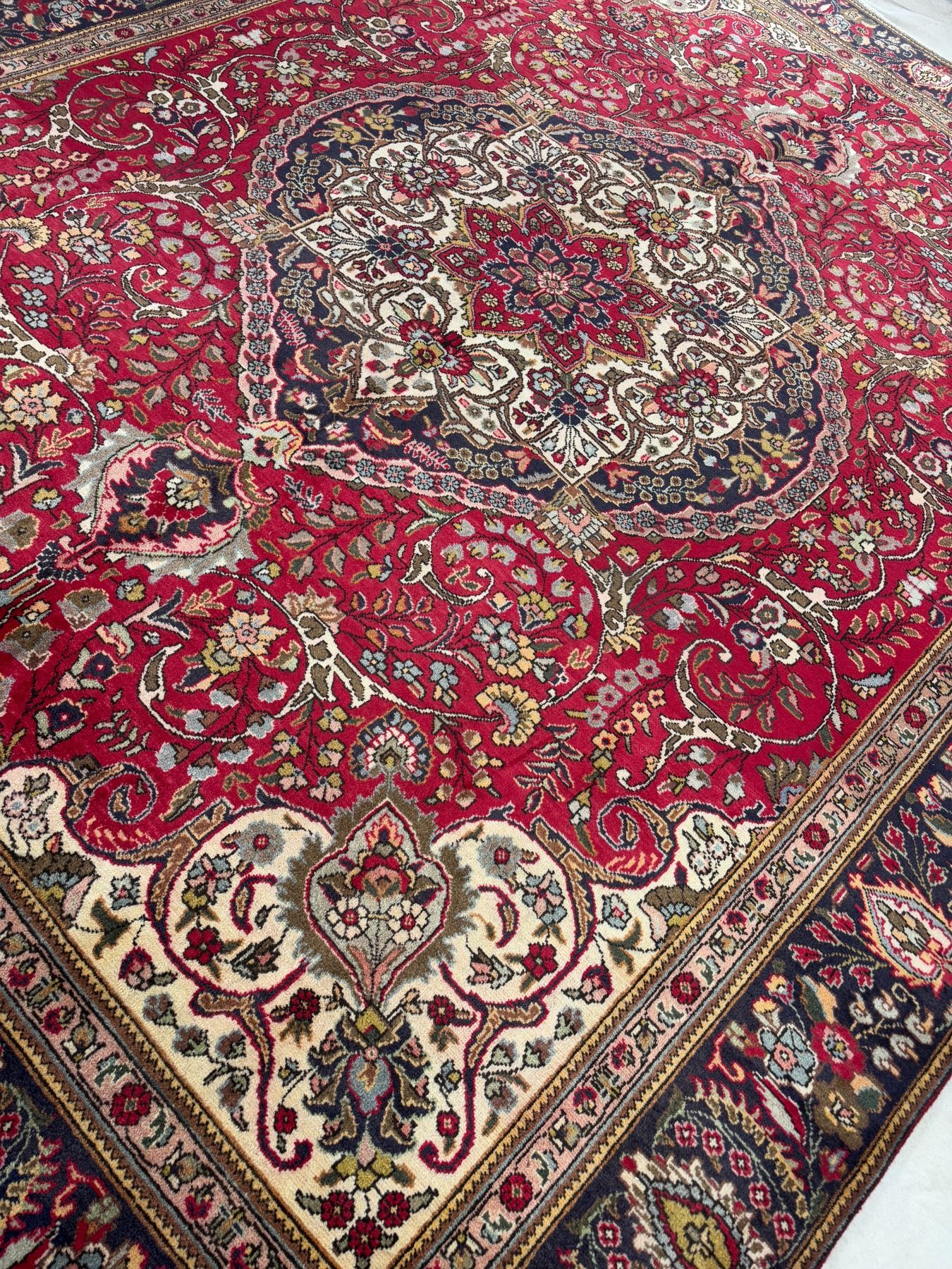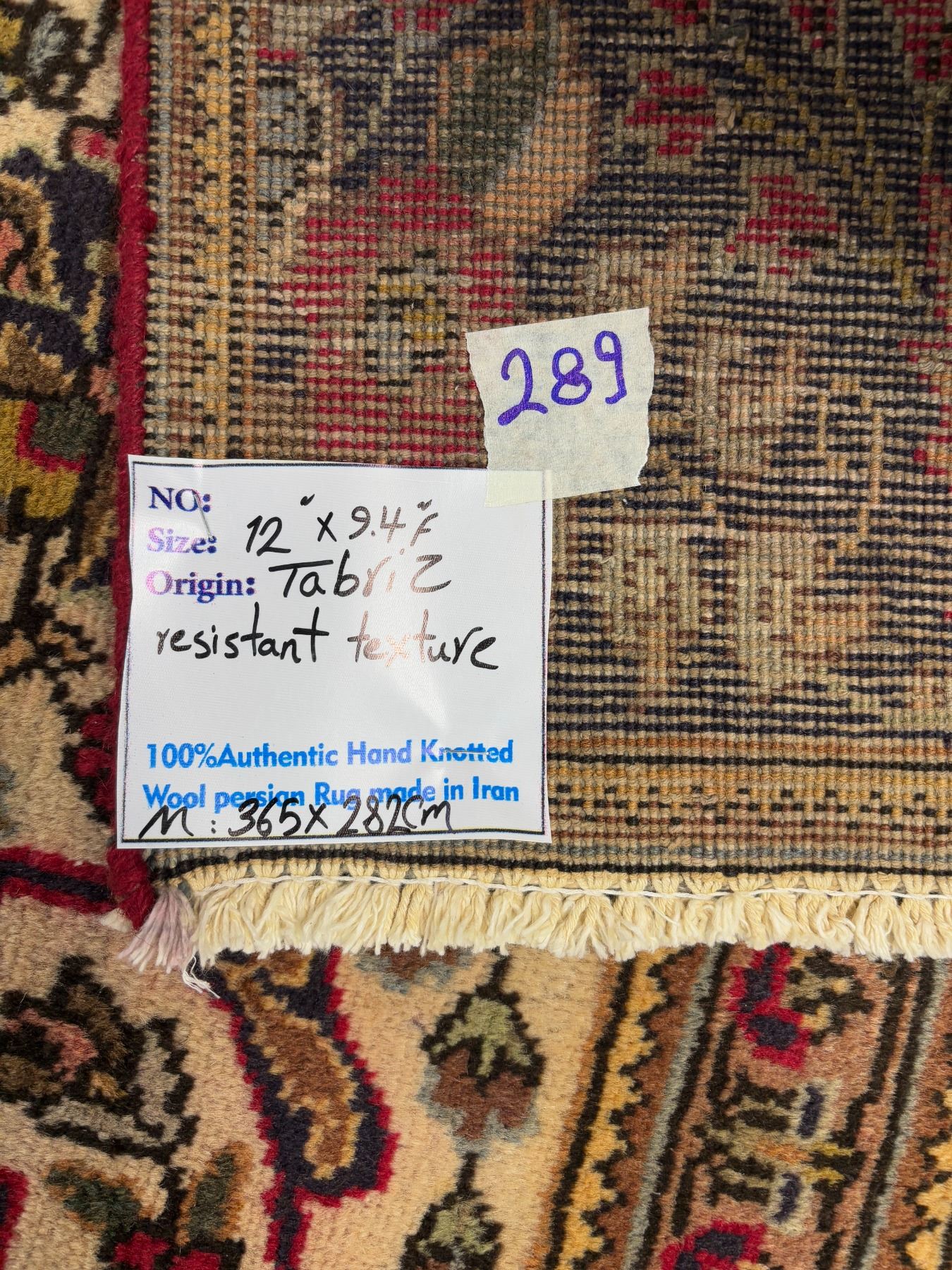Tabriz 100% Authentic Hand Knotted Wool Persian Rug Handmade in Iran resistant texture (These carpets have been washed professionally, and for this reason there are no 3tears or dirt in this carpet and it will be delivered to you clean and smooth. Don't miss the opportunity to buy such a carpet) Size:  12' × 9.4'