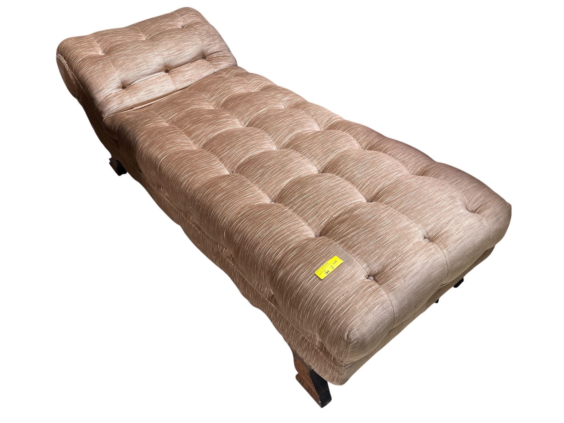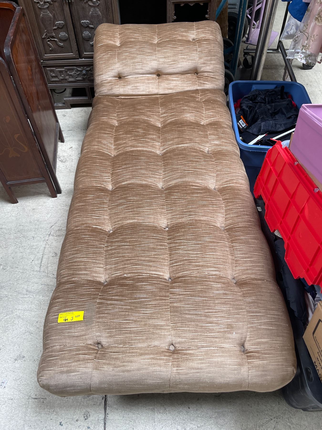 Tan Tufted Upholstered Chaise Lounge Bench, Approx. H22" x W25" x L70"
