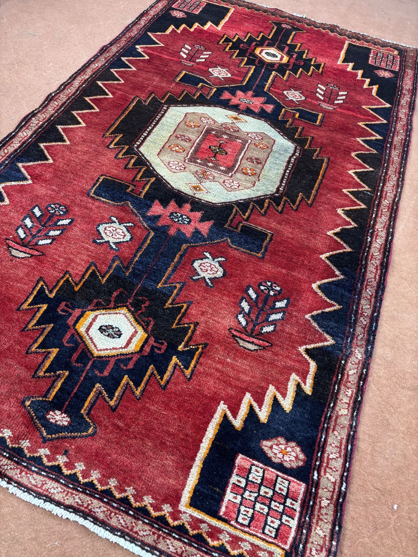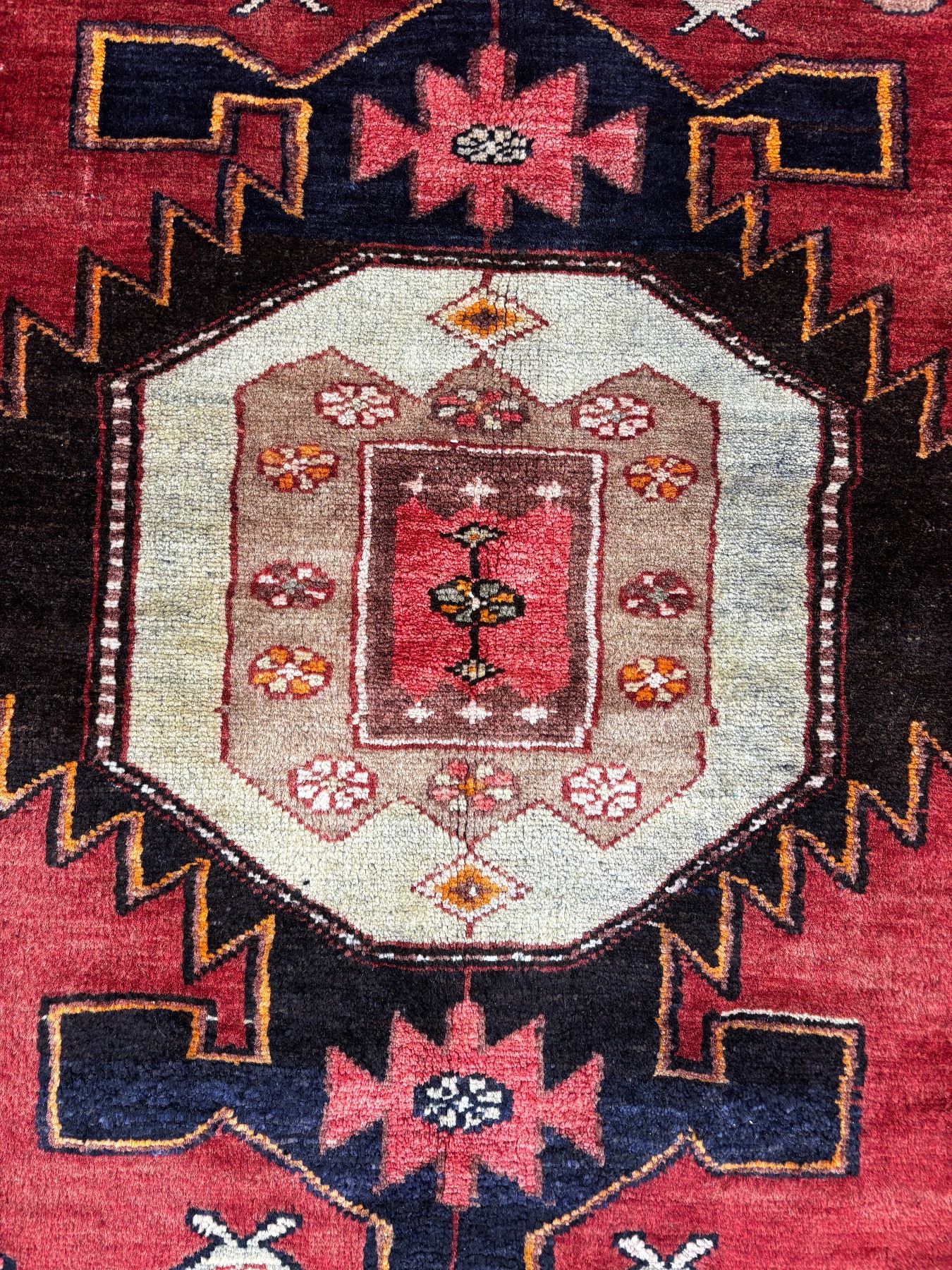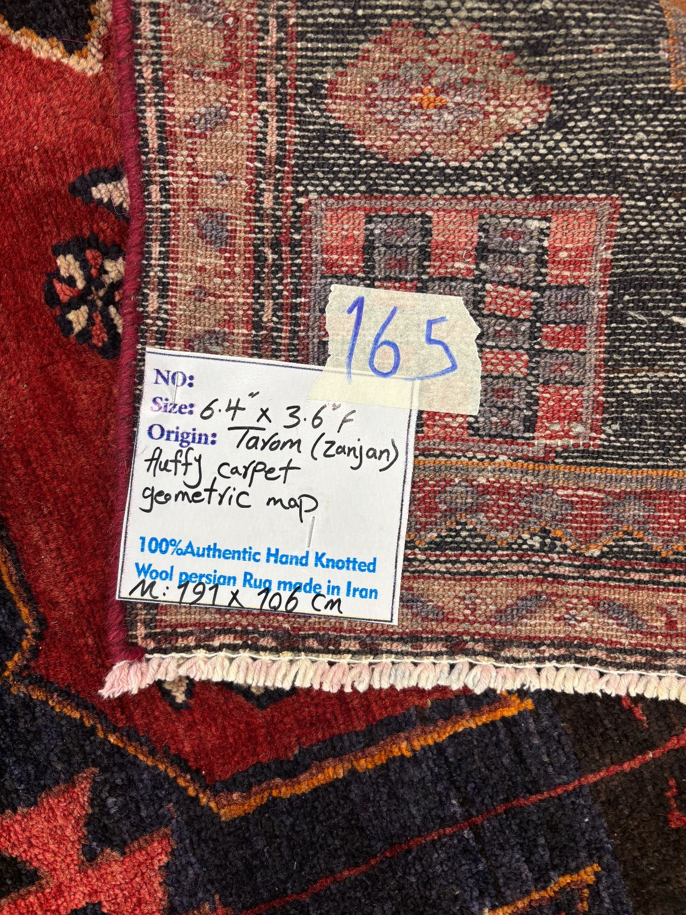 Tarom (Zanjan) geometric map Fluffy carpet 100% Authentic Hand Knotted Wool Persian Rug Handmade in Iran (Size 6.4' x 3.6' - 191x 106 cm) (These carpets have been washed professionally, and for this reason there are no tears or dirt in this carpet and it will be delivered to you clean and smooth. Don't miss the opportunity to buy such a carpet)
