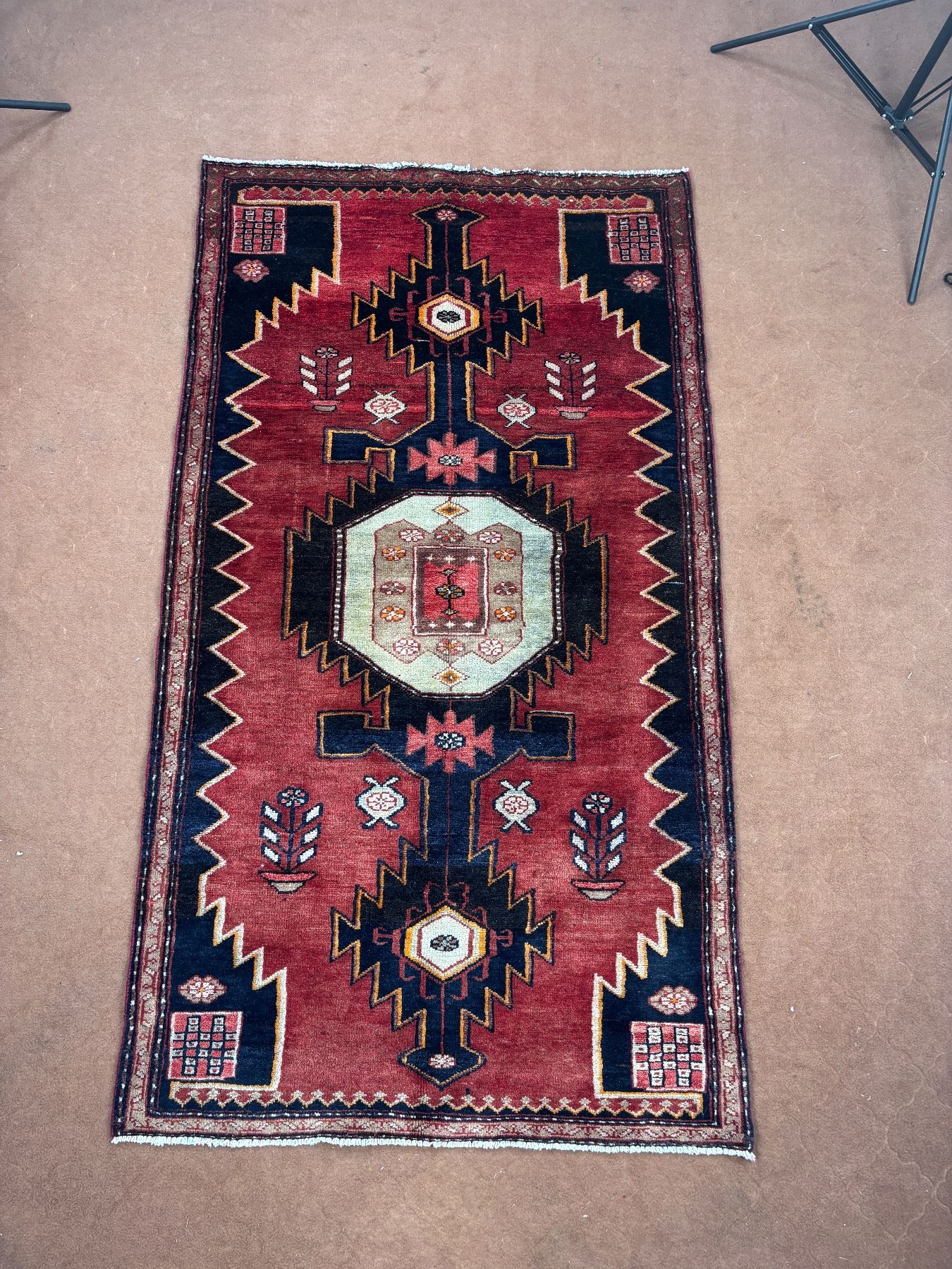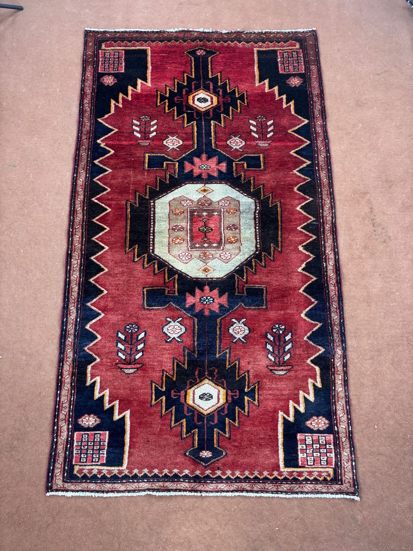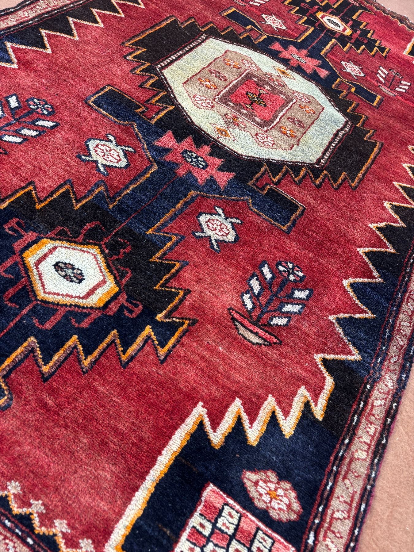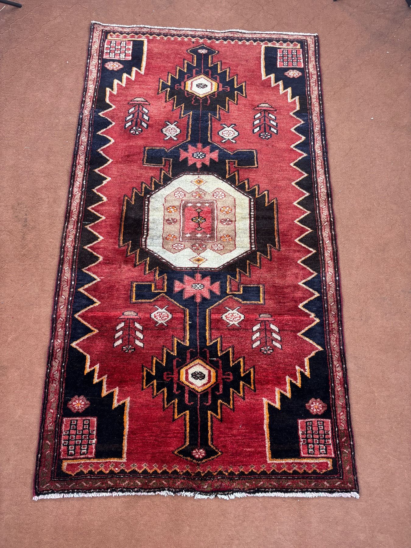 Tarom (Zanjan) geometric map Fluffy carpet 100% Authentic Hand Knotted Wool Persian Rug Handmade in Iran (Size 6.4' x 3.6' - 191x 106 cm) (These carpets have been washed professionally, and for this reason there are no tears or dirt in this carpet and it will be delivered to you clean and smooth. Don't miss the opportunity to buy such a carpet)