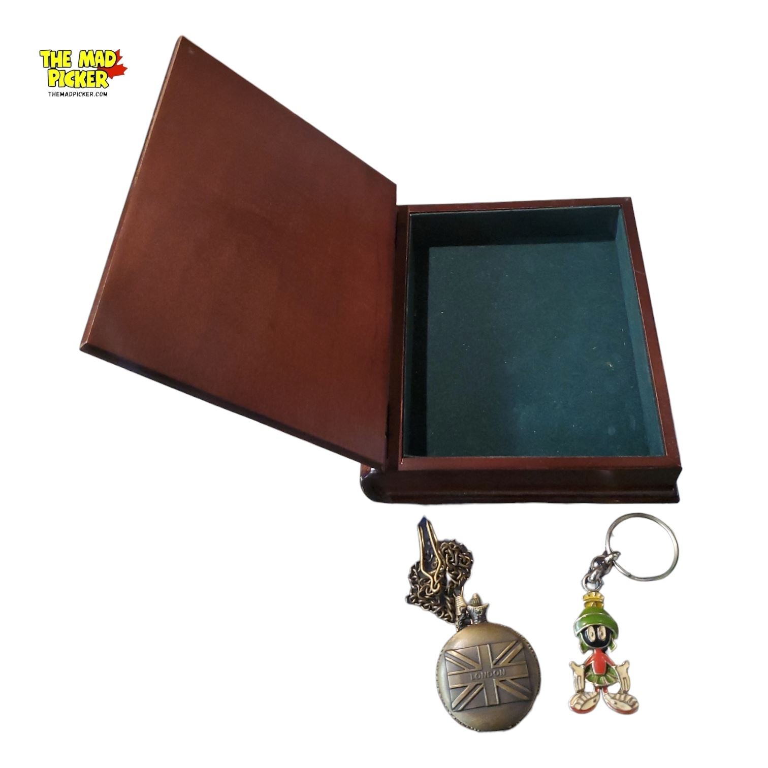The Bombay Company Vintage Brown Wood Travel Document Case, Stopwatch & Marvin Keychain