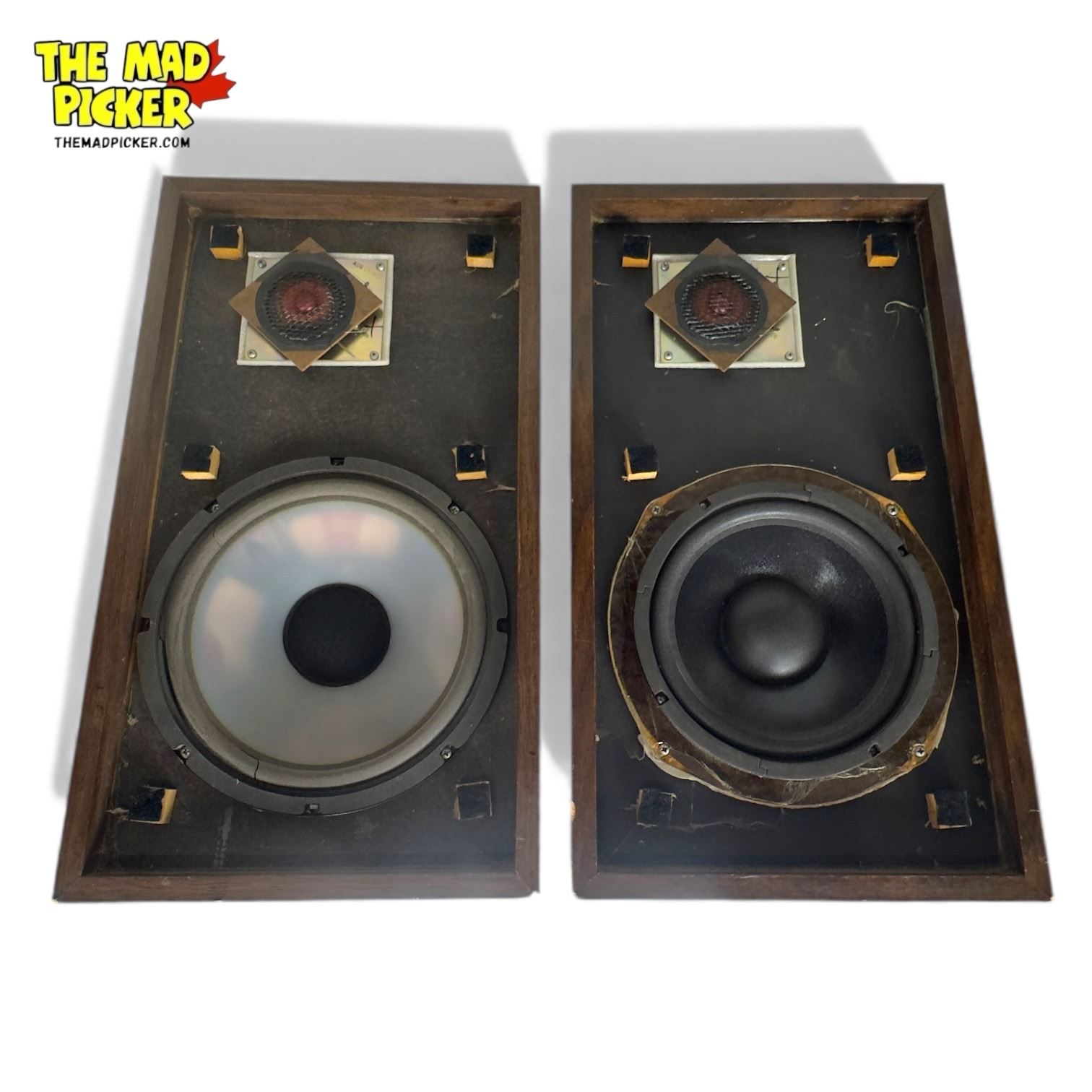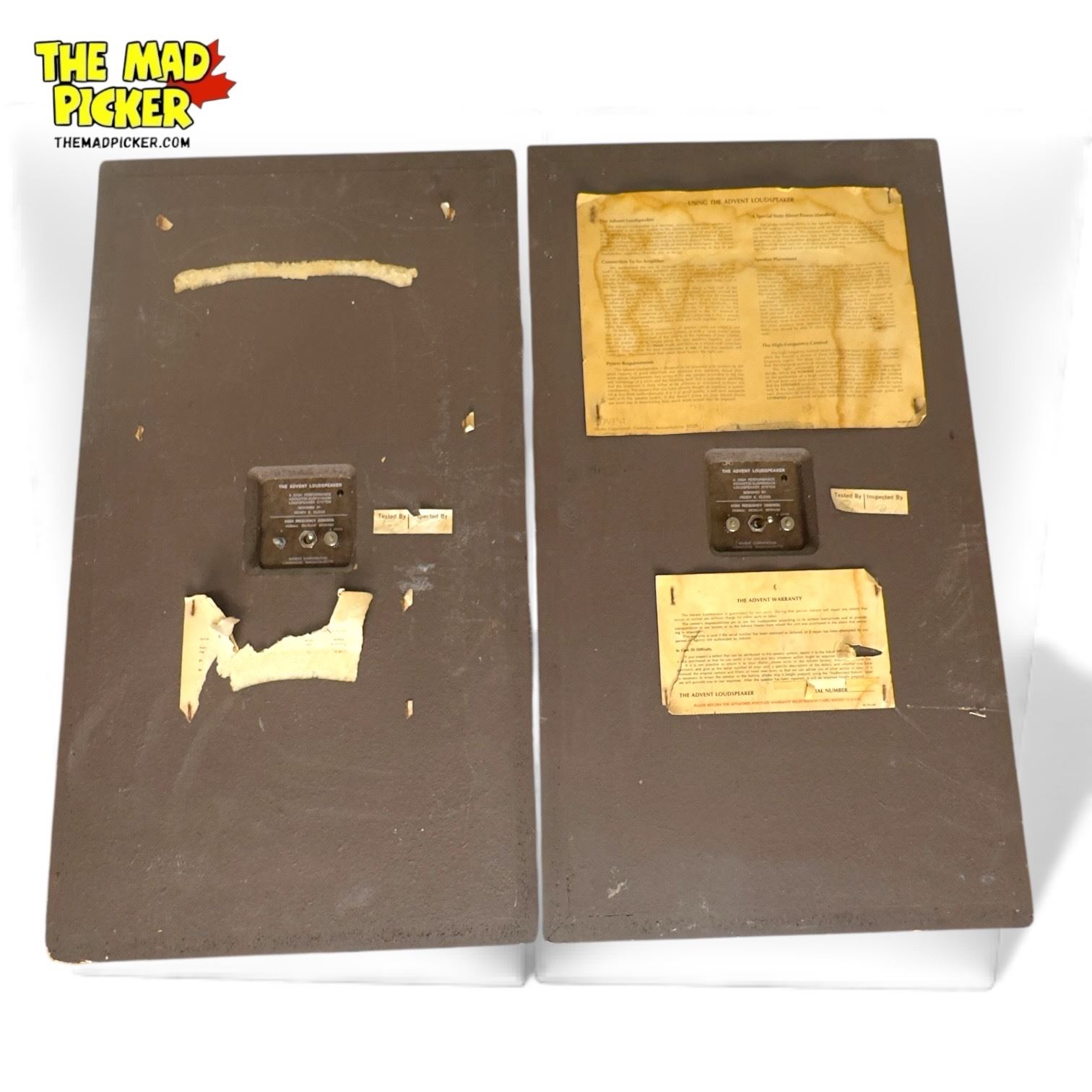 The Larger Advent Loudspeaker, often called the Original Large Advent (OLA), is a classic 1970s hi-fi speaker featuring a 10-inch woofer mounted in a 12-inch basket with Masonite ring and inverted surround for grill clearance, paired with the famous 1-inch “fried egg†orange dome tweeter. It uses a two-way acoustic suspension design and is rated for 20–60W RMS with an 8Ω nominal impedance. Frequency response is approximately 30Hz–15kHz, delivering a warm, full sound that made it one of the most popular vintage speakers of its era. Cabinet is an acoustic suspension sealed enclosure available in real wood veneer or vinyl clad versions. Dimensions: approx. 26" H × 14" W × 11.5" D. Generations include the Original Large Advent (OLA, early 1970s), New Large Advent (NLA, mid-1970s with metal basket woofer), and later Advent 5002/5012 refinements.