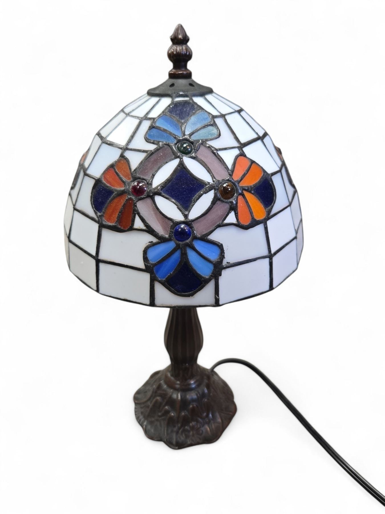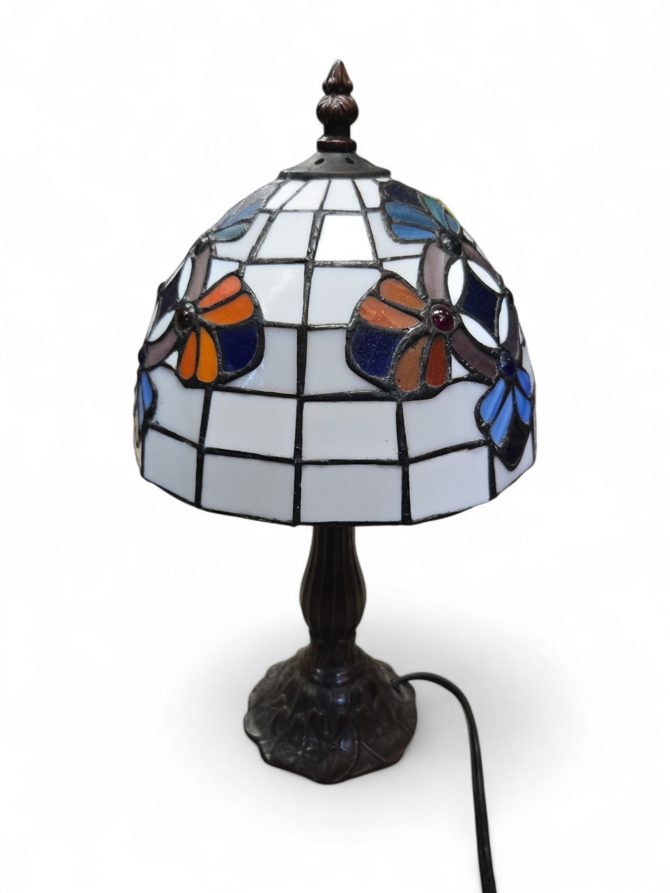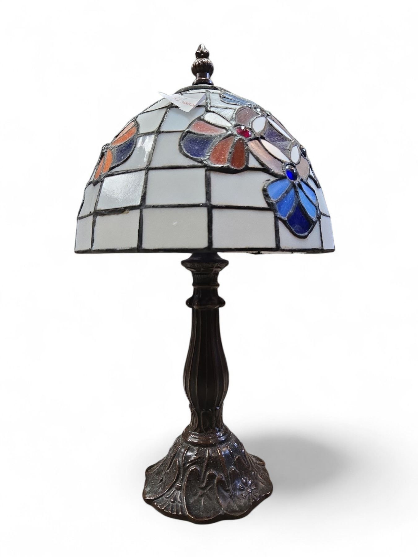 Tiffany Style Stained Glass Lamp with Lily Pads on the Base (14" Tall X 8" Diameter Shade)