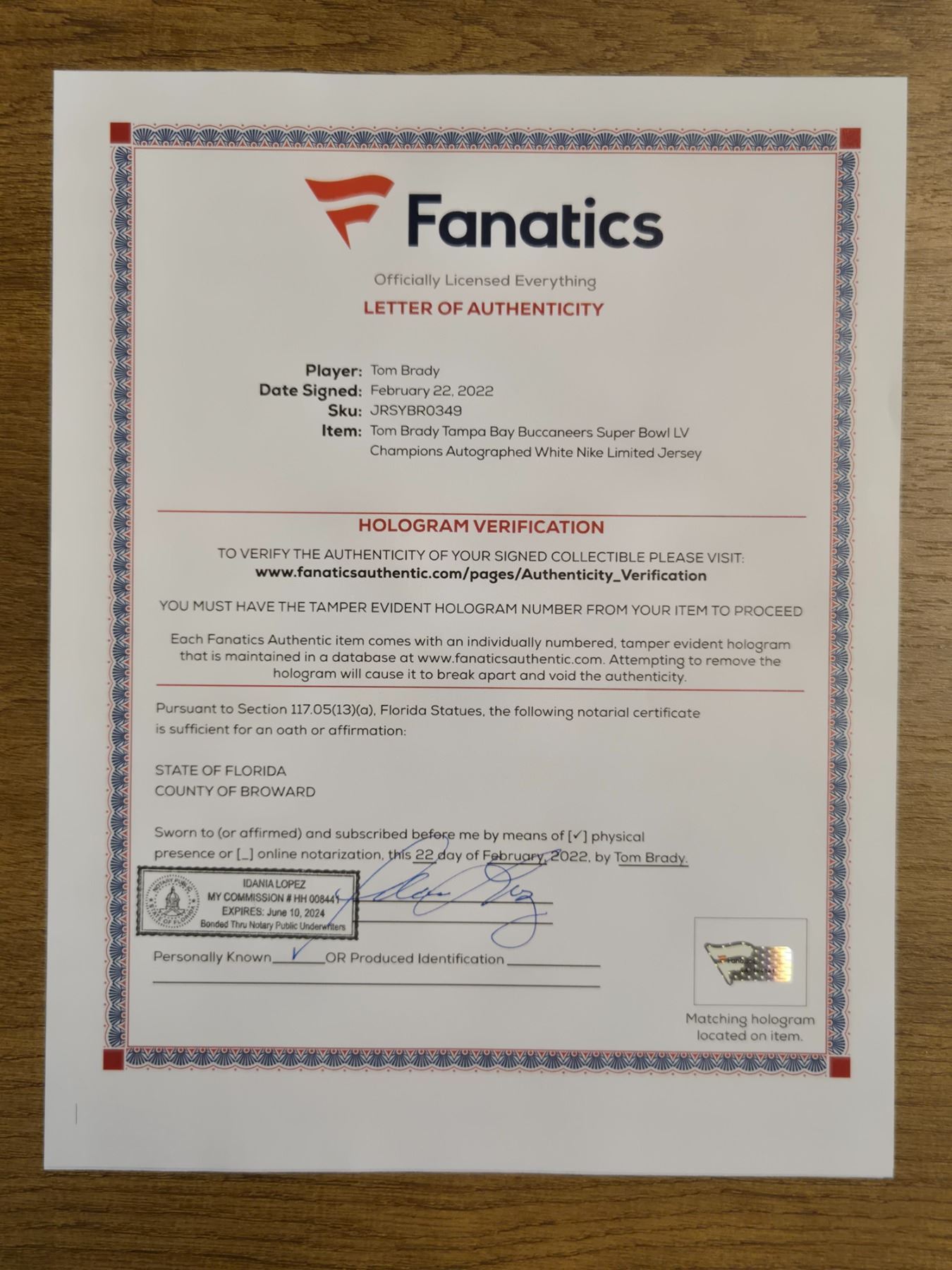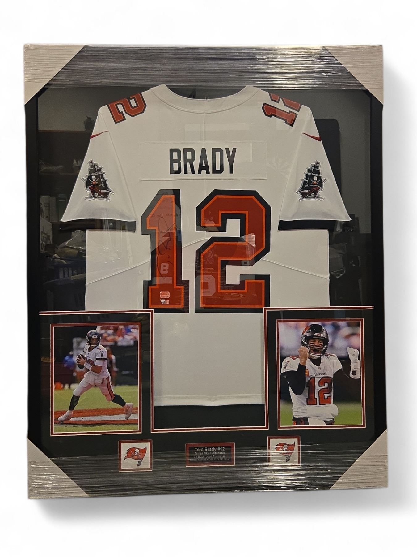 Tom Brady #12 Tampa Bay Buccaneers Superbowl Champion Hand-Autographed Framed Limited Jersey - with COA (Frame: 33 1/2" L x 42" H x 2" D). Retail value you on this Fanatics Authentic item is approximately $3500! A perfect gift for Christmas and and investment that will hold it's value. Fanatics.com