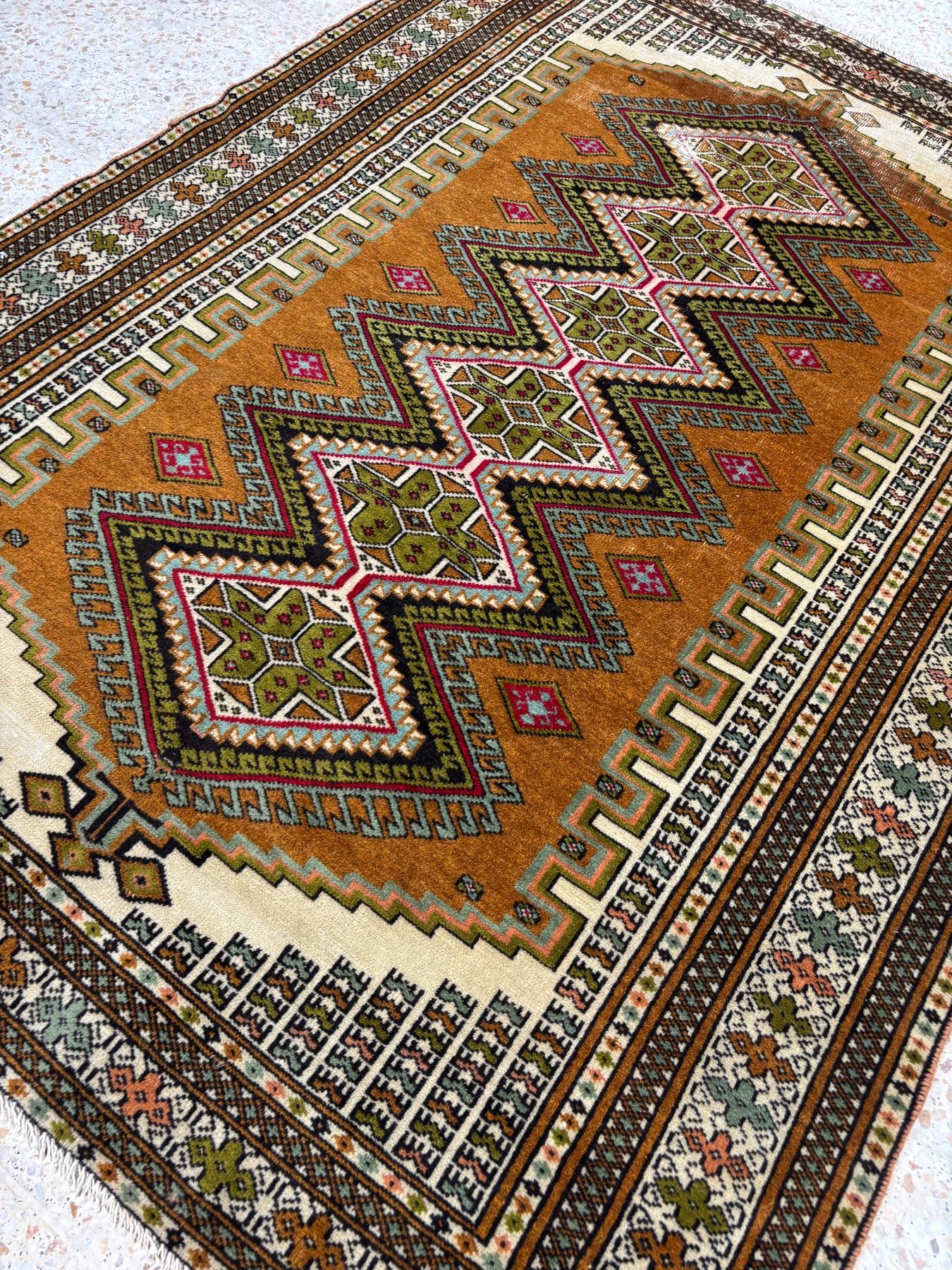 Torkaman - 100% Authentic Hand Knotted Wool Persian Rug - Handmade in Iran - 5.8" x 4.4" ft - No: 104