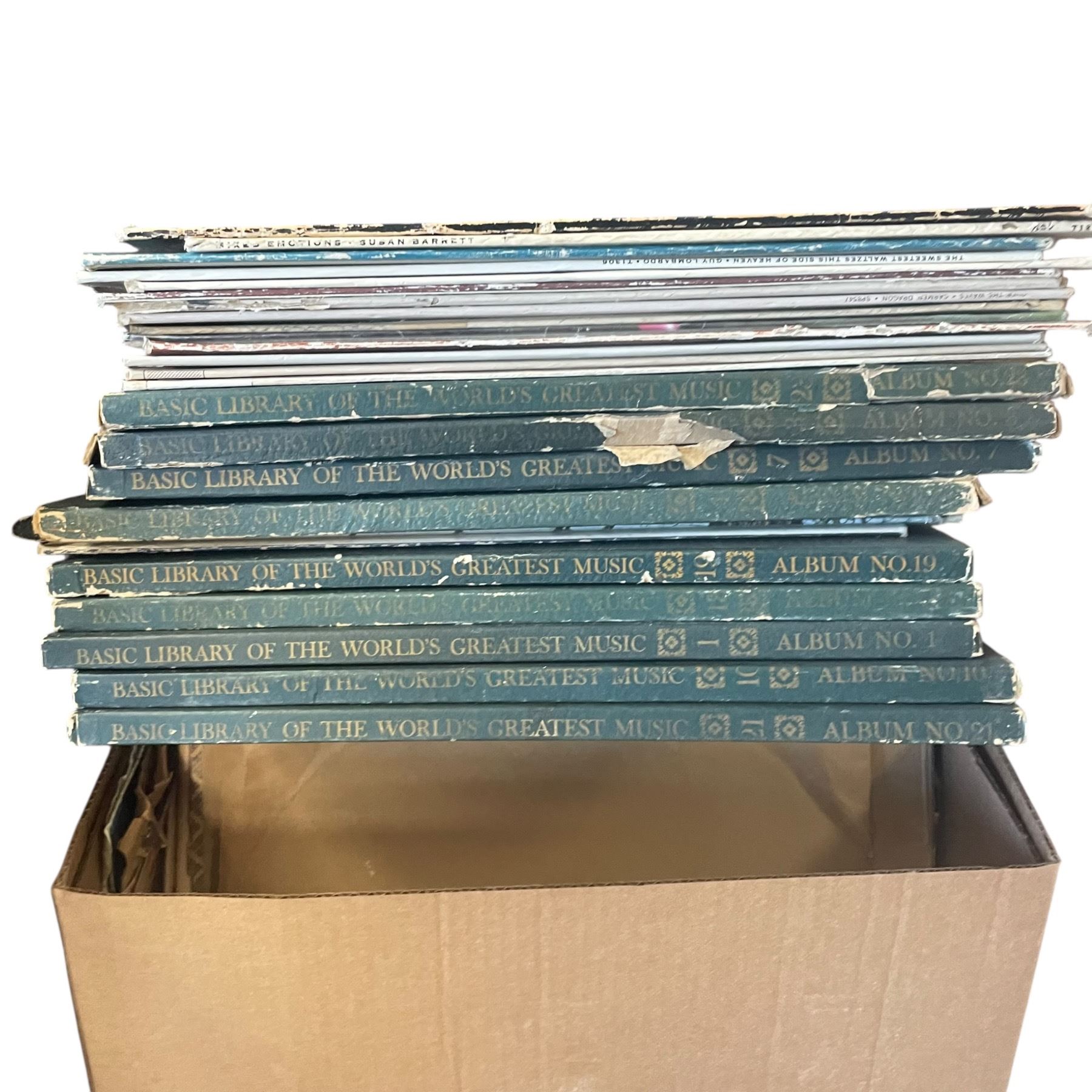 Tote & Box of Vintage Records and Vinyl LP Records