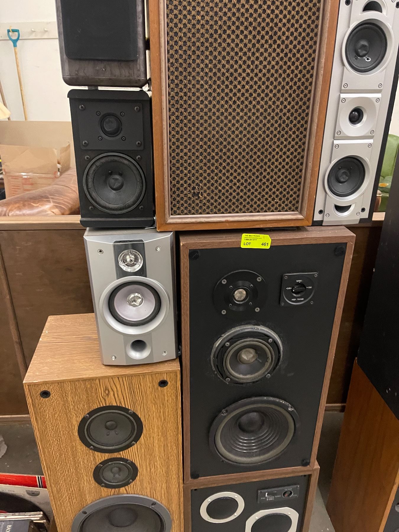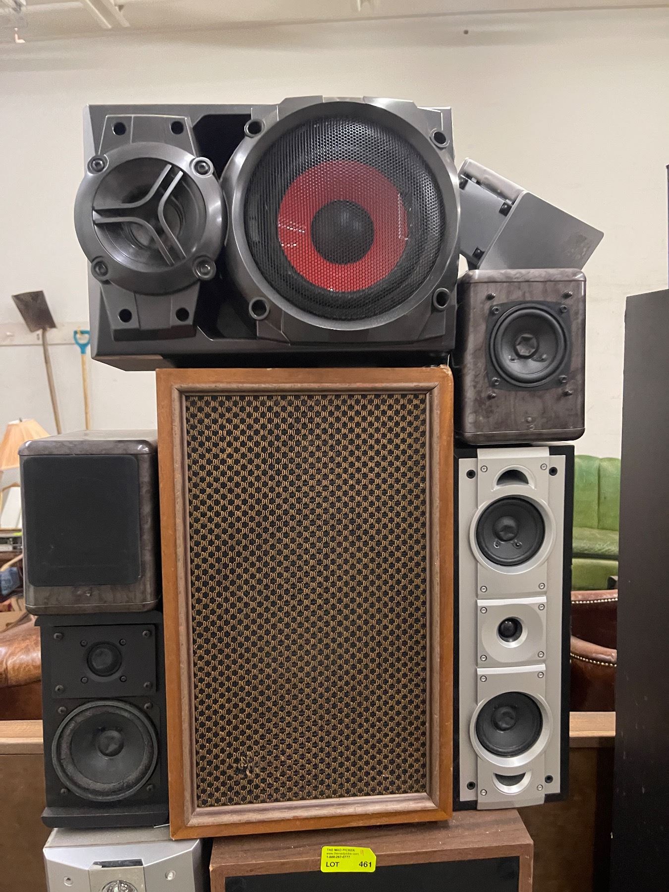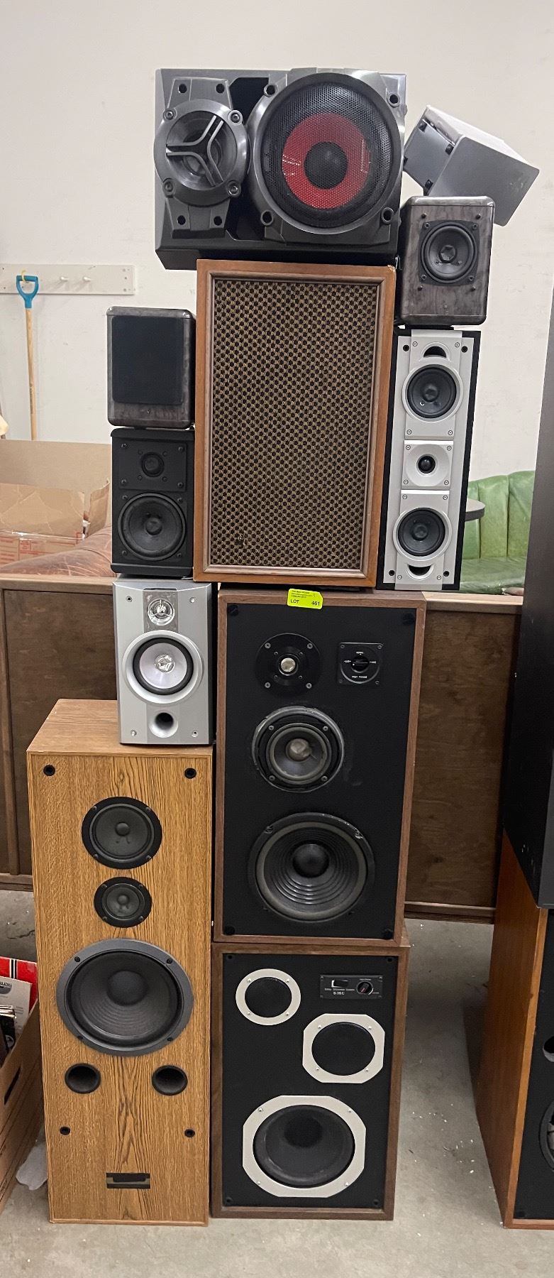 Tower of 11 Assorted Speakers Bolted Together