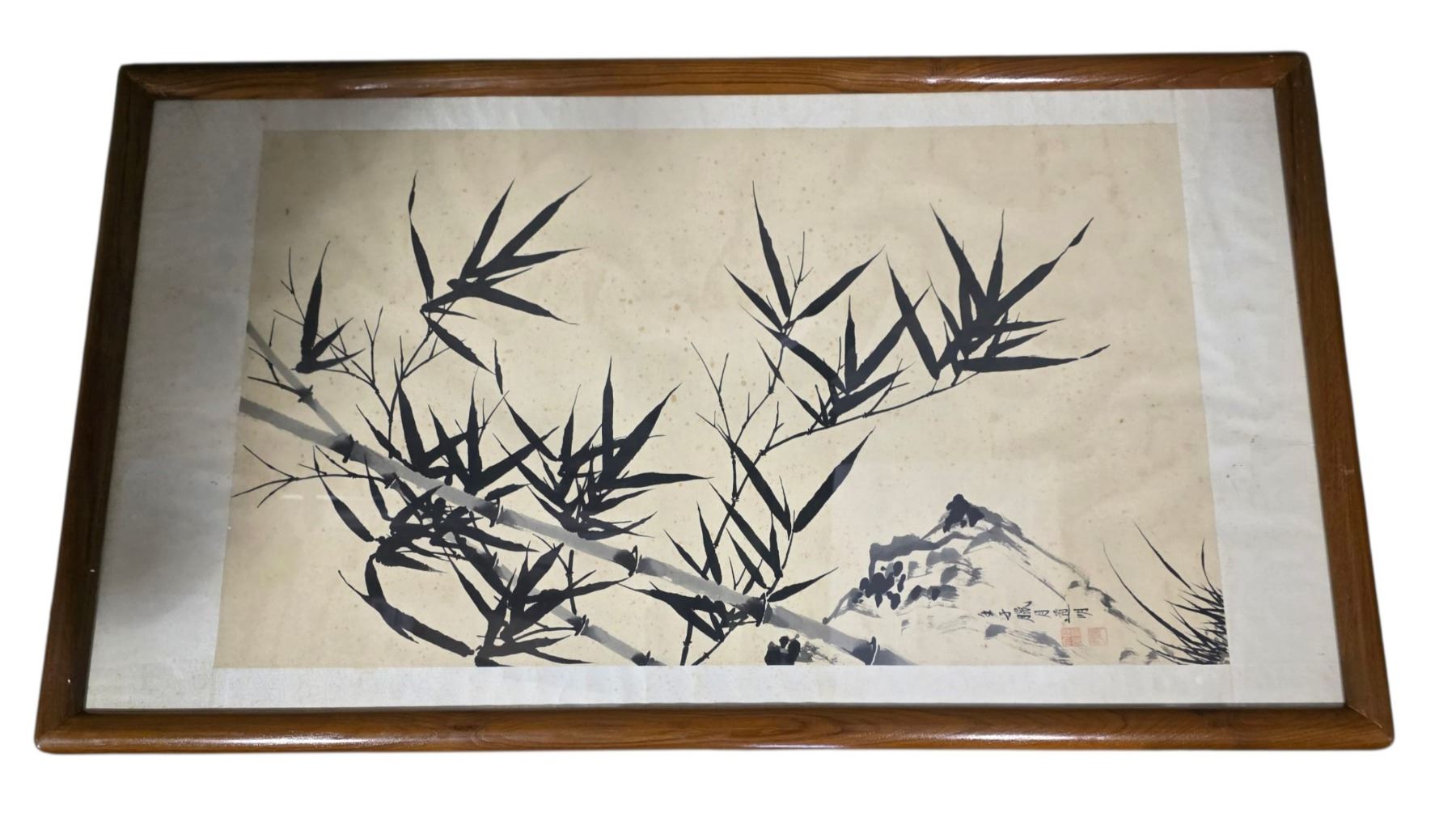 Traditional Chinese Ink wash Painting of Bamboo and Mountains Signed