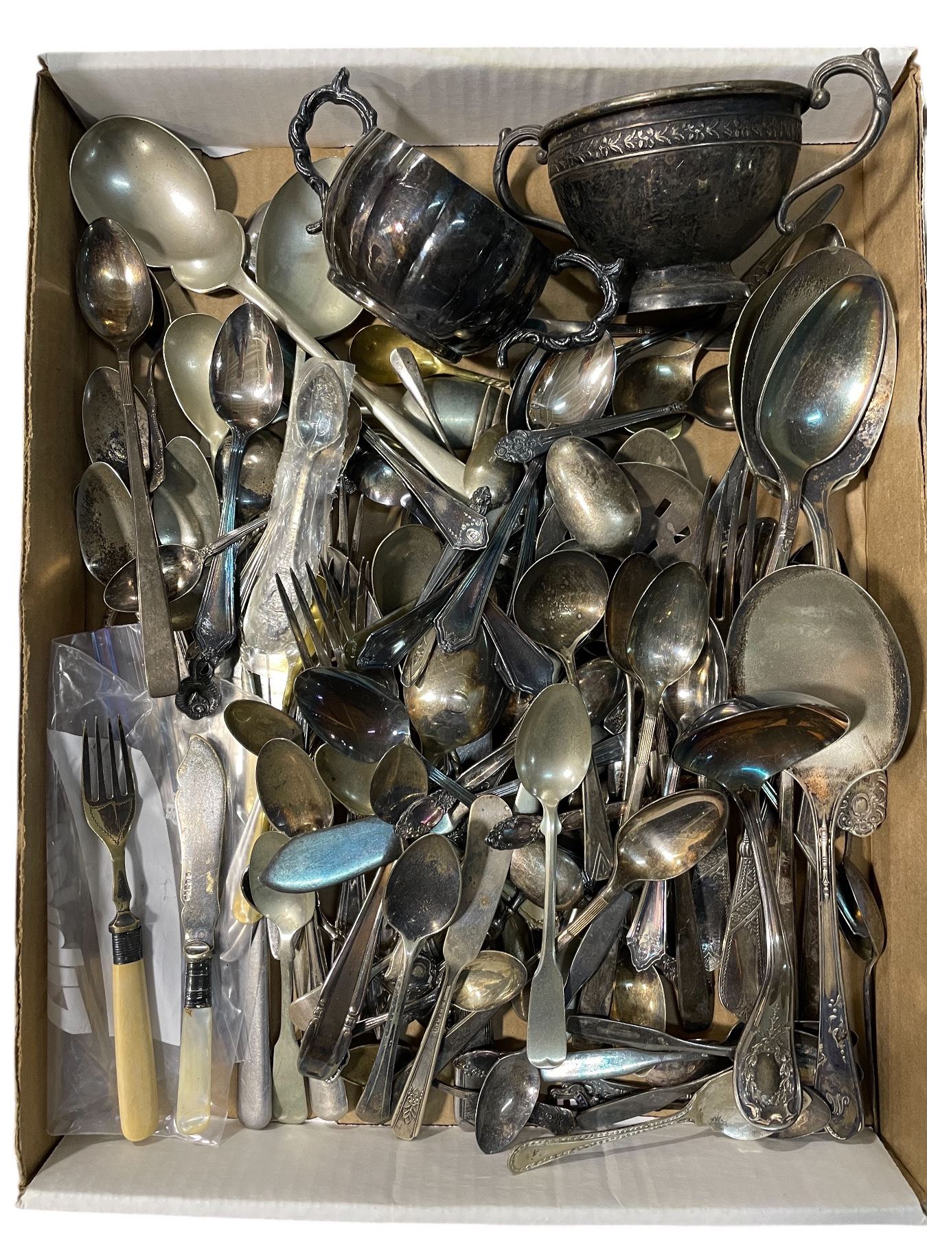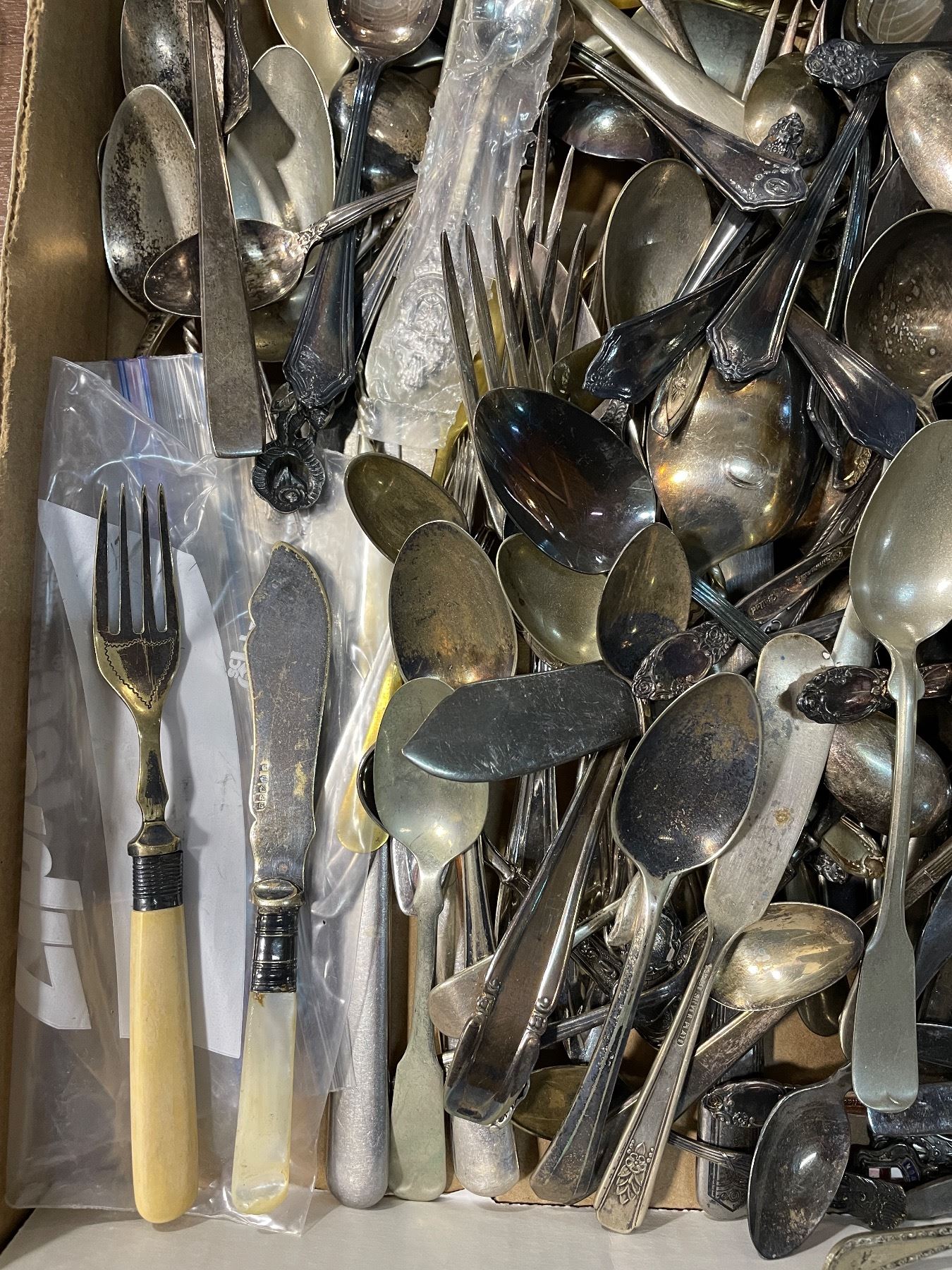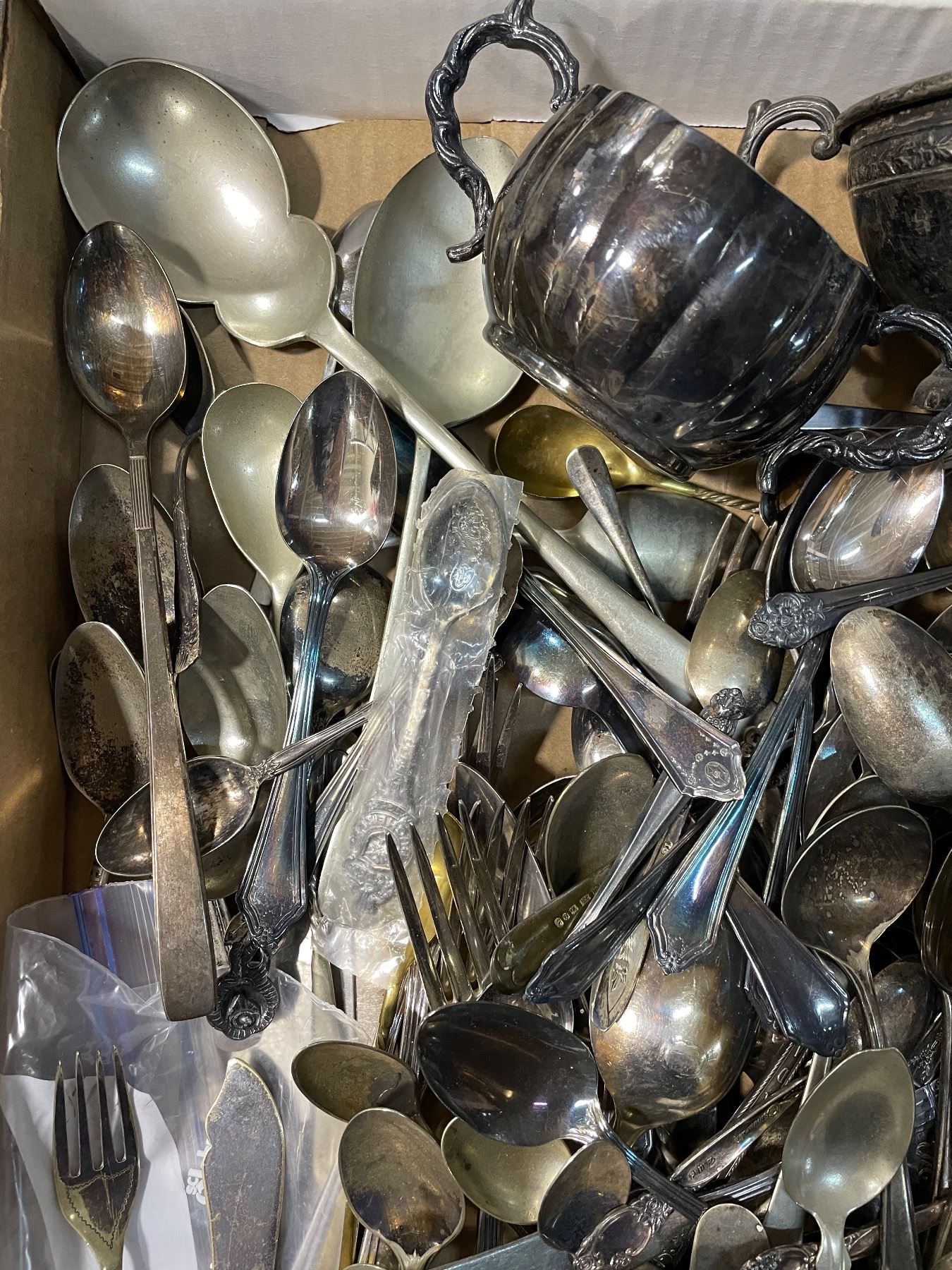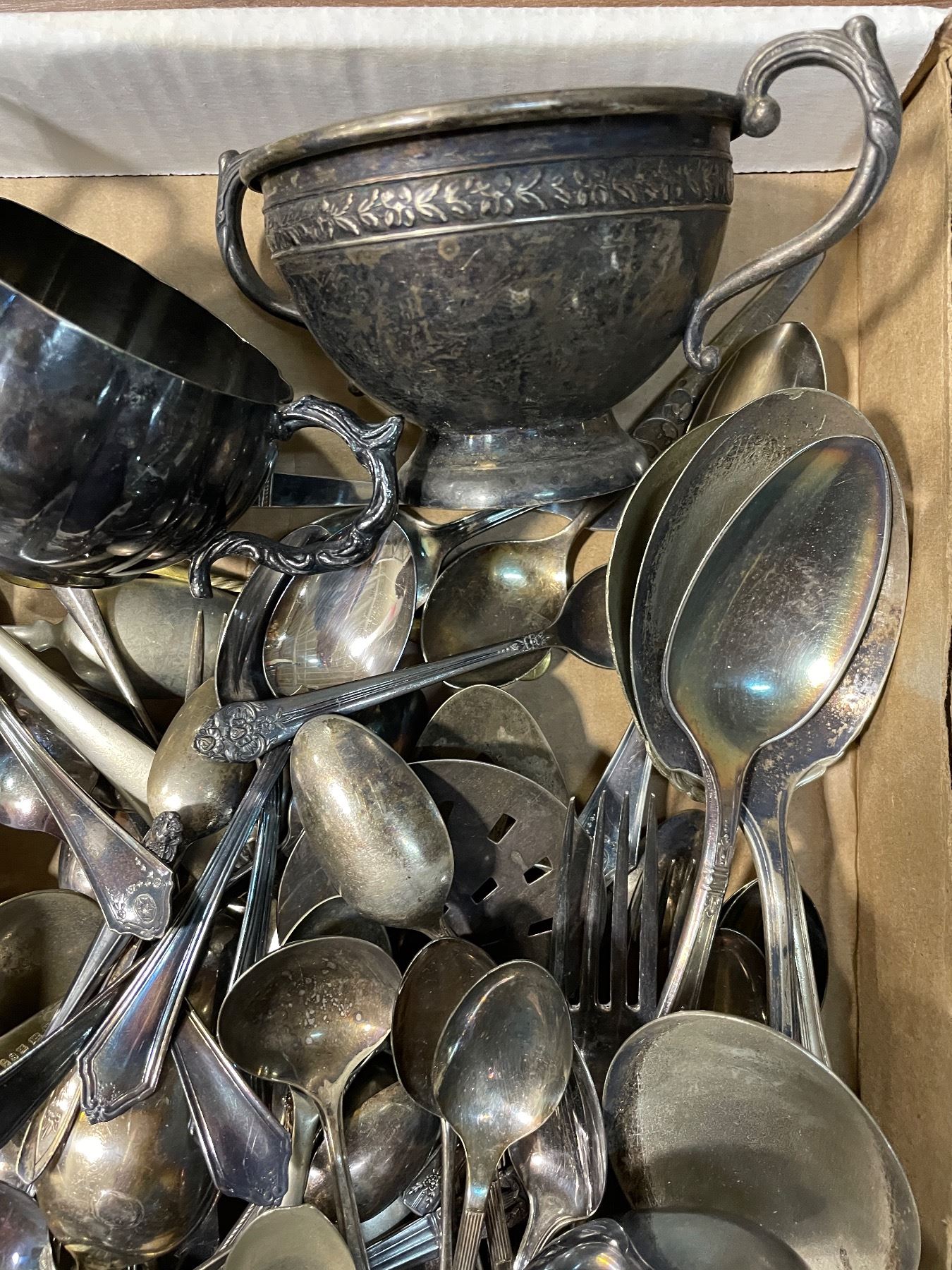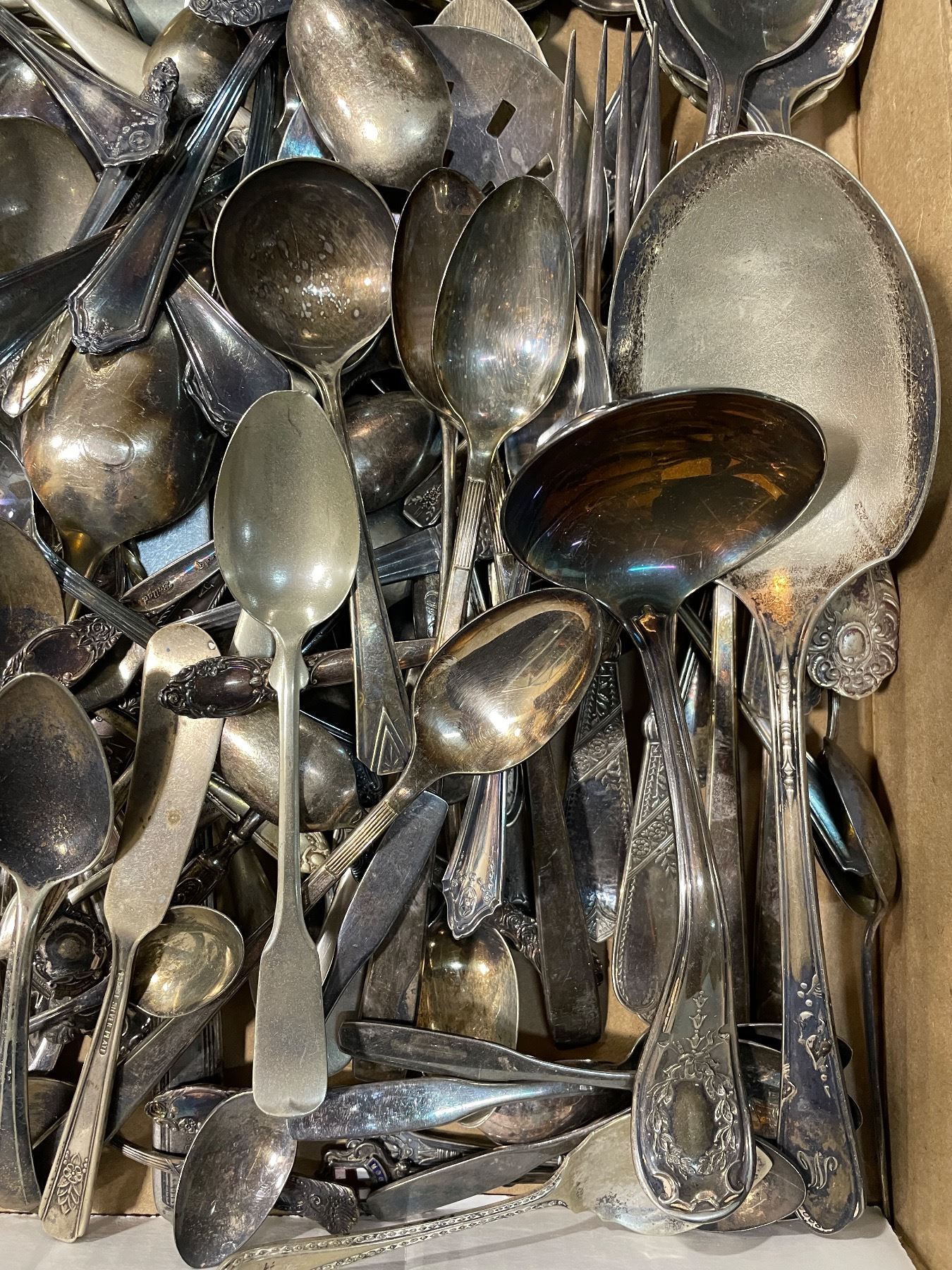 Tray of Vintage Silver Plated & Nickel-Silver Tableware & Flatware