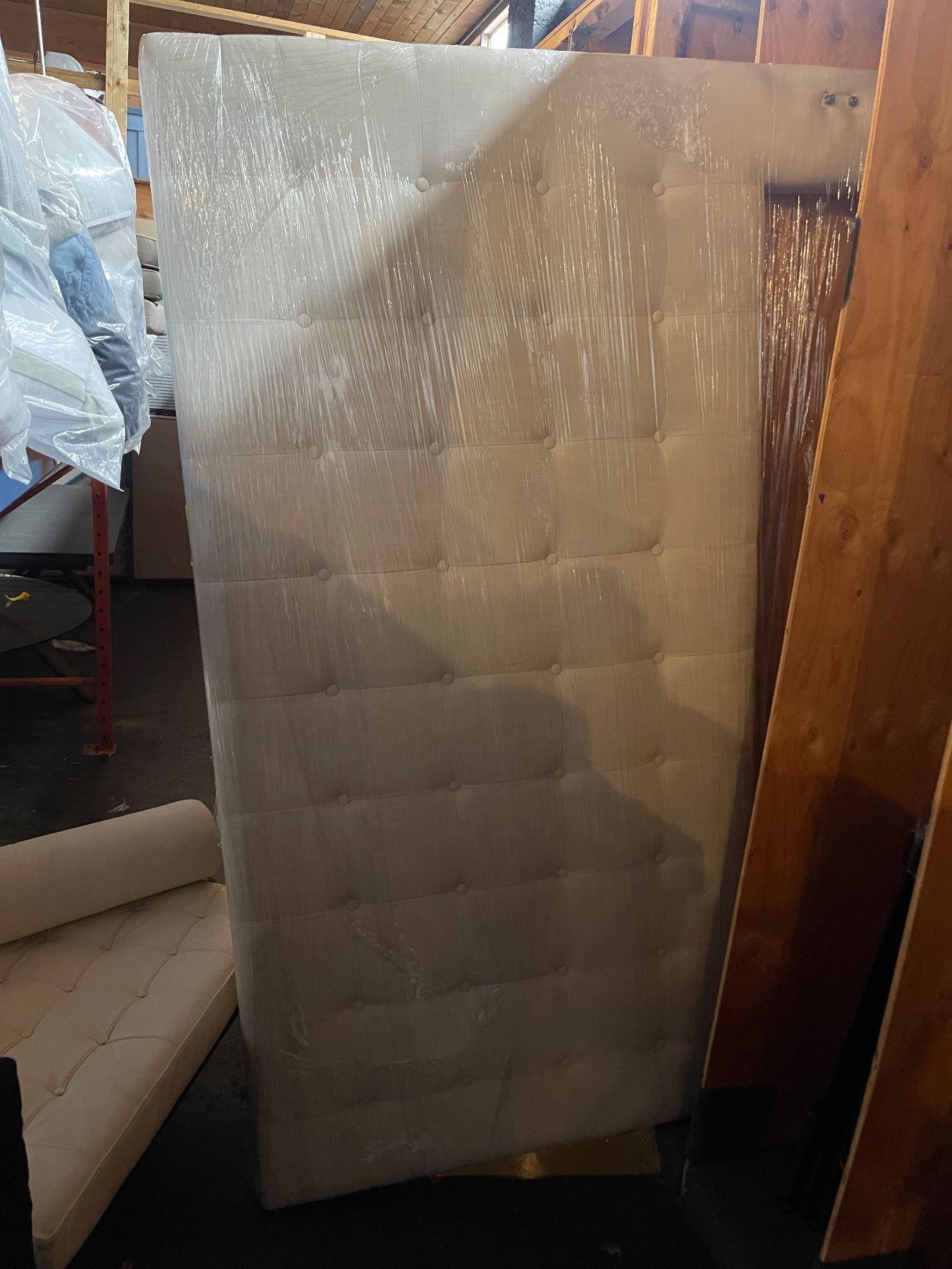Tufted Grey Fabric King Sized Headboard w/ Frame