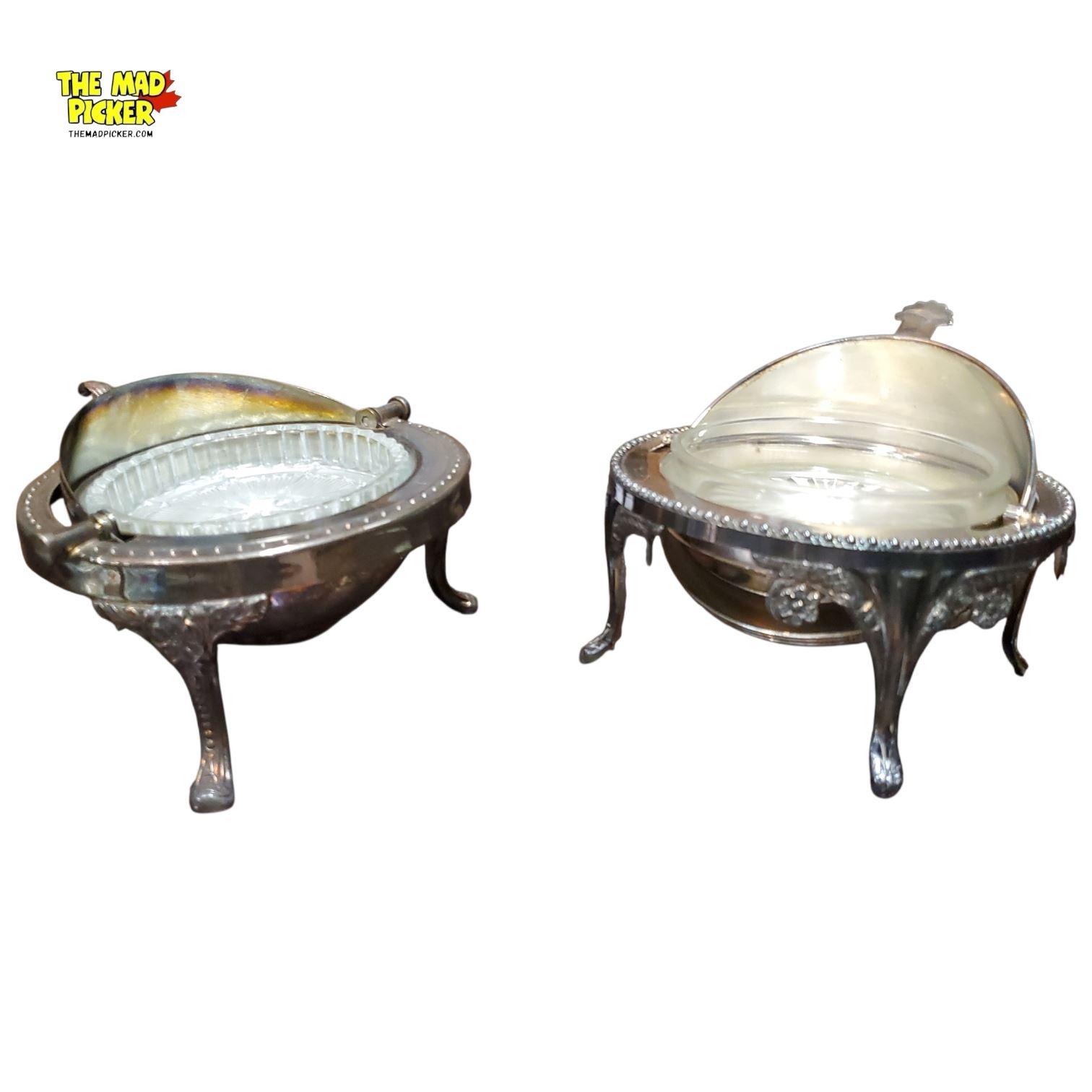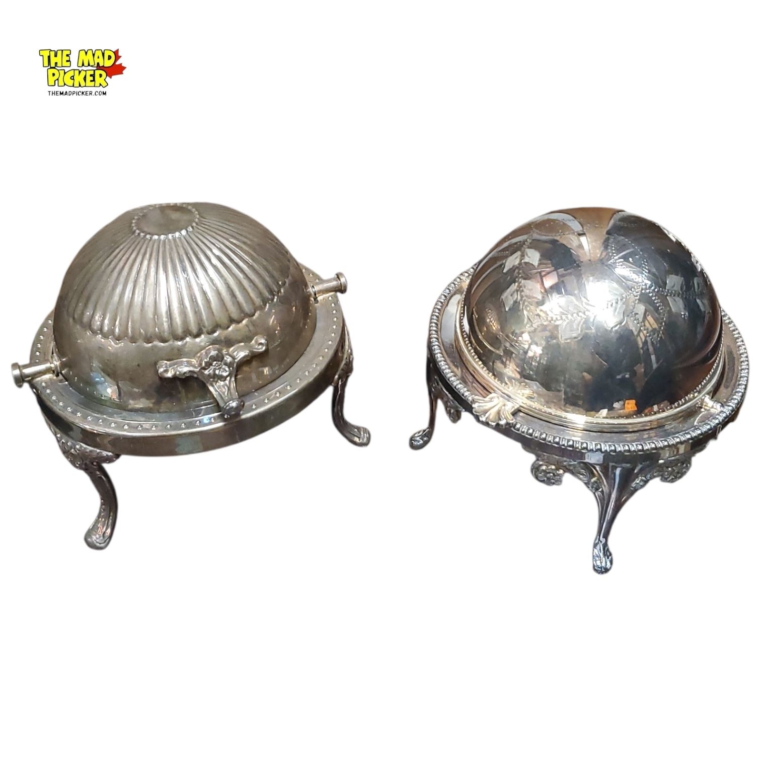 Two Ornate Silver-Plated Serving Dishes (One S.P. Brass Made in Canada, One APE Made in England)