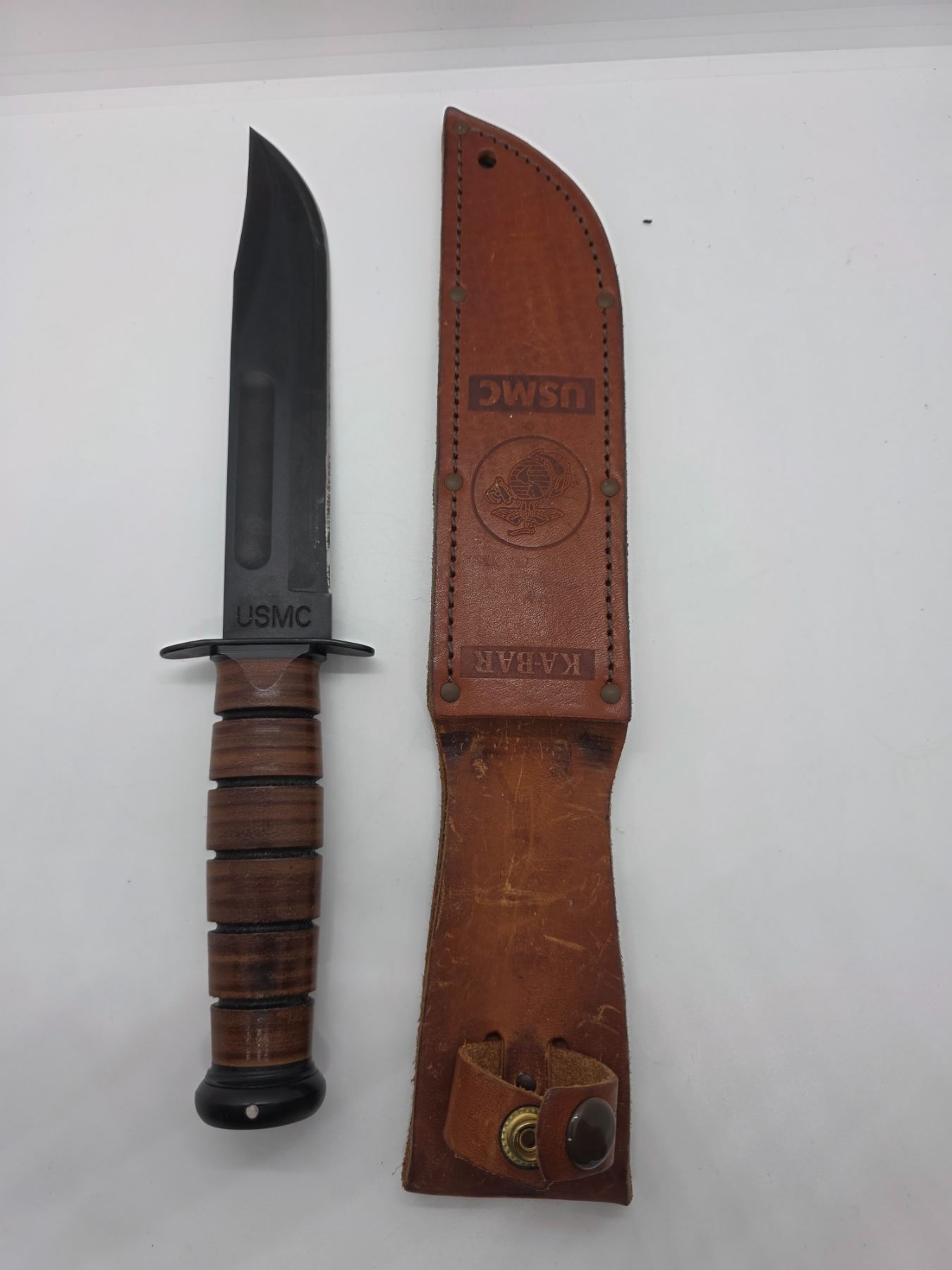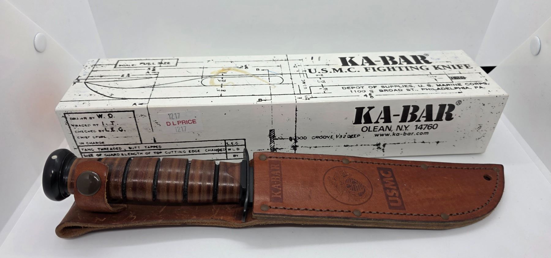 USMC KA-BAR Knife in Leather Belt Sheath and Original Box