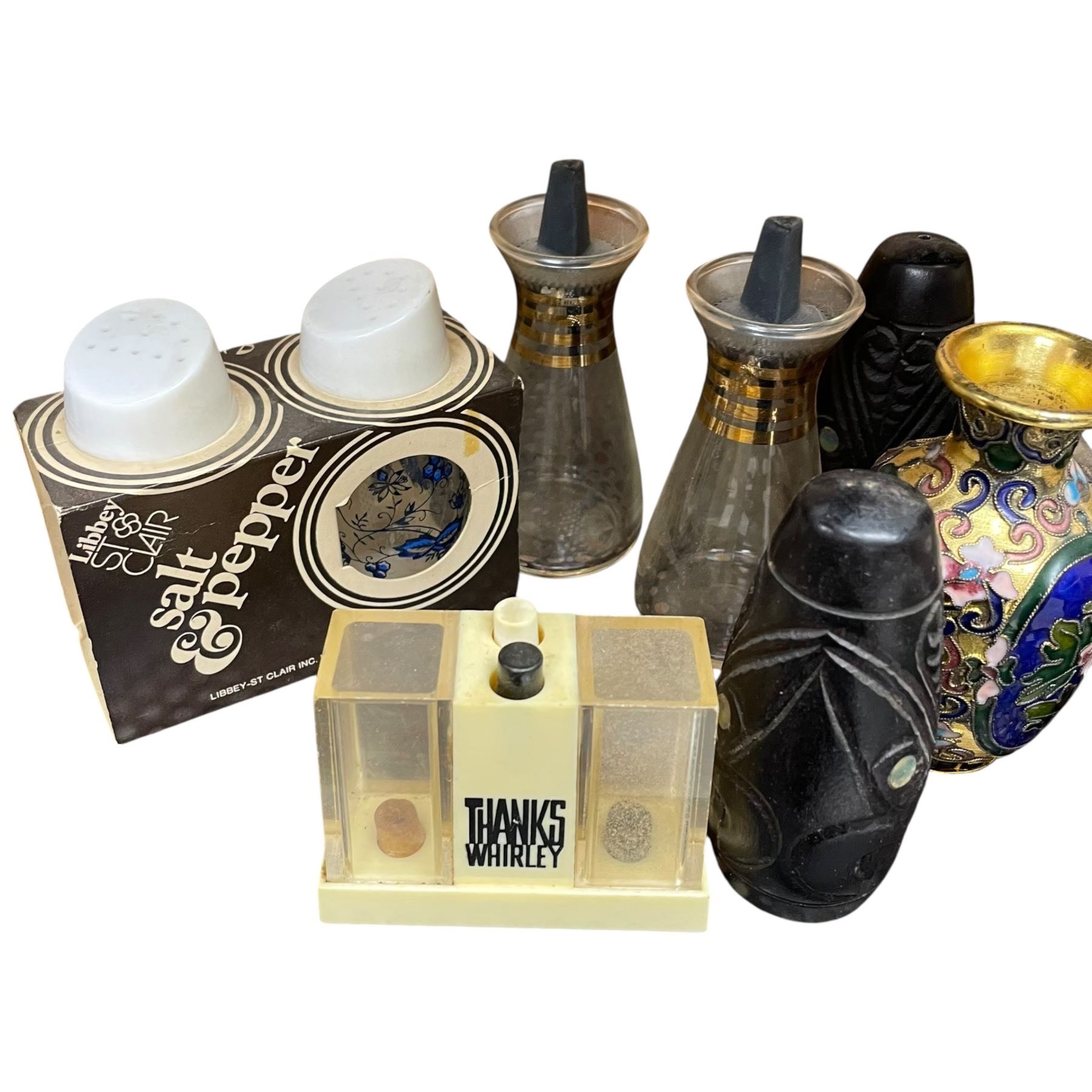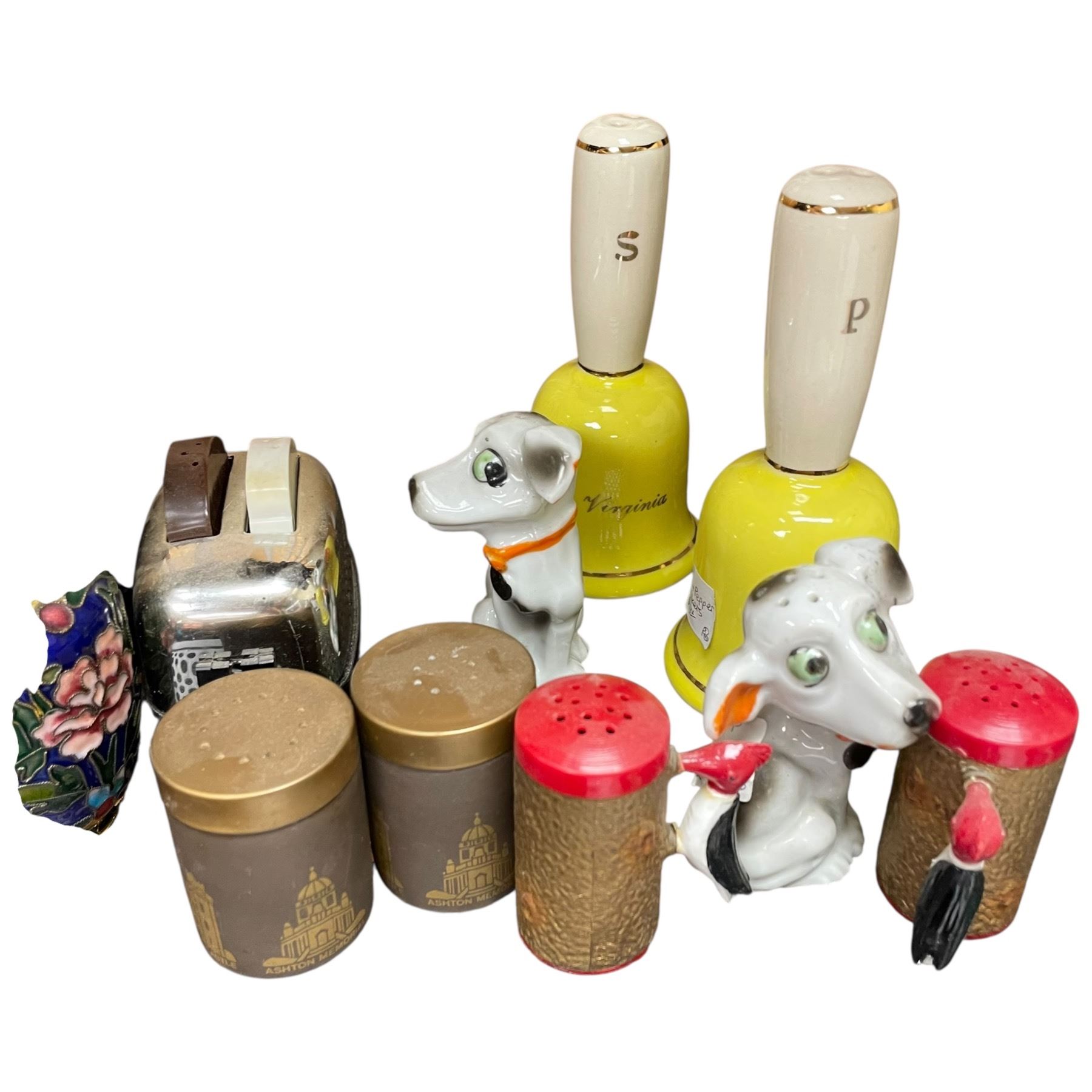This collection features a variety of unique salt and pepper shakers along with other decorative collectibles. Includes an assortment of designs and materials. Item is as pictured.