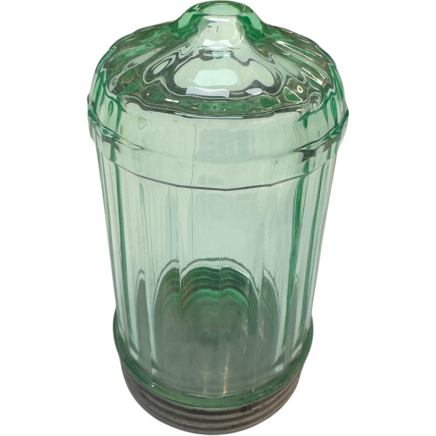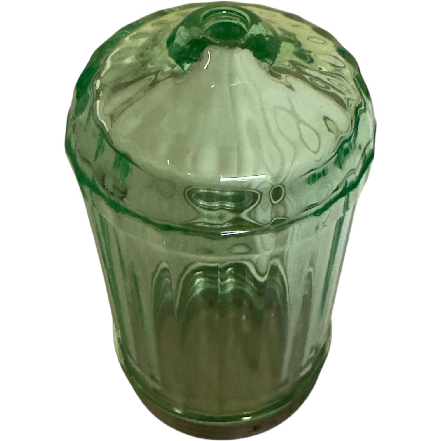 Uranium glass sugar dispenser measuring 5.5-Inch tall. Glows under UV light due to the uranium content. Item is as pictured.