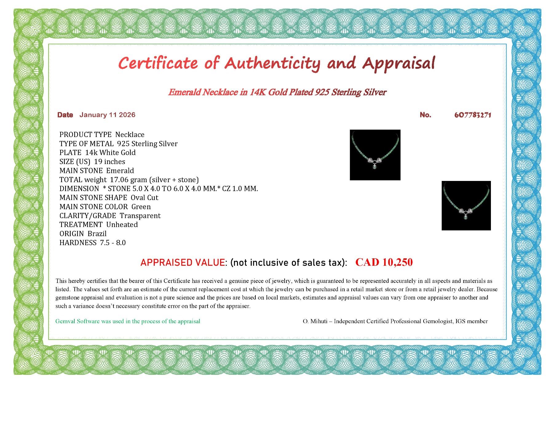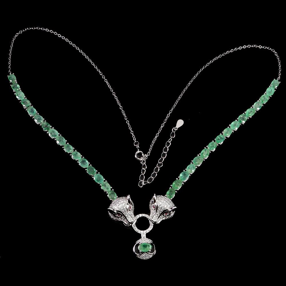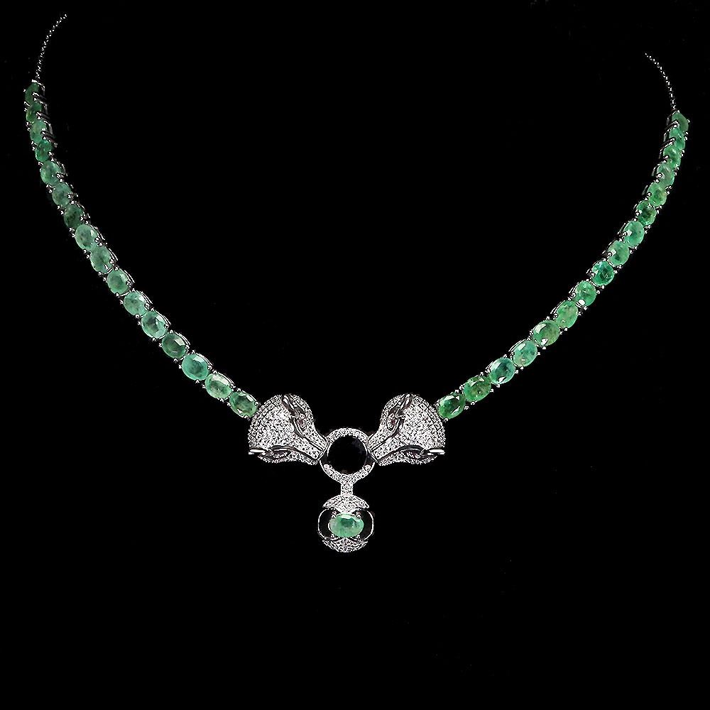 VALUABLE GOOD CLARITY EMERALD TIGER HEAD NECKLACE IN 14K WHITE GOLD PLATED OVER 925 STERLING SILVER - APPRAISED REPLACEMENT VALUE CAD 10,250
