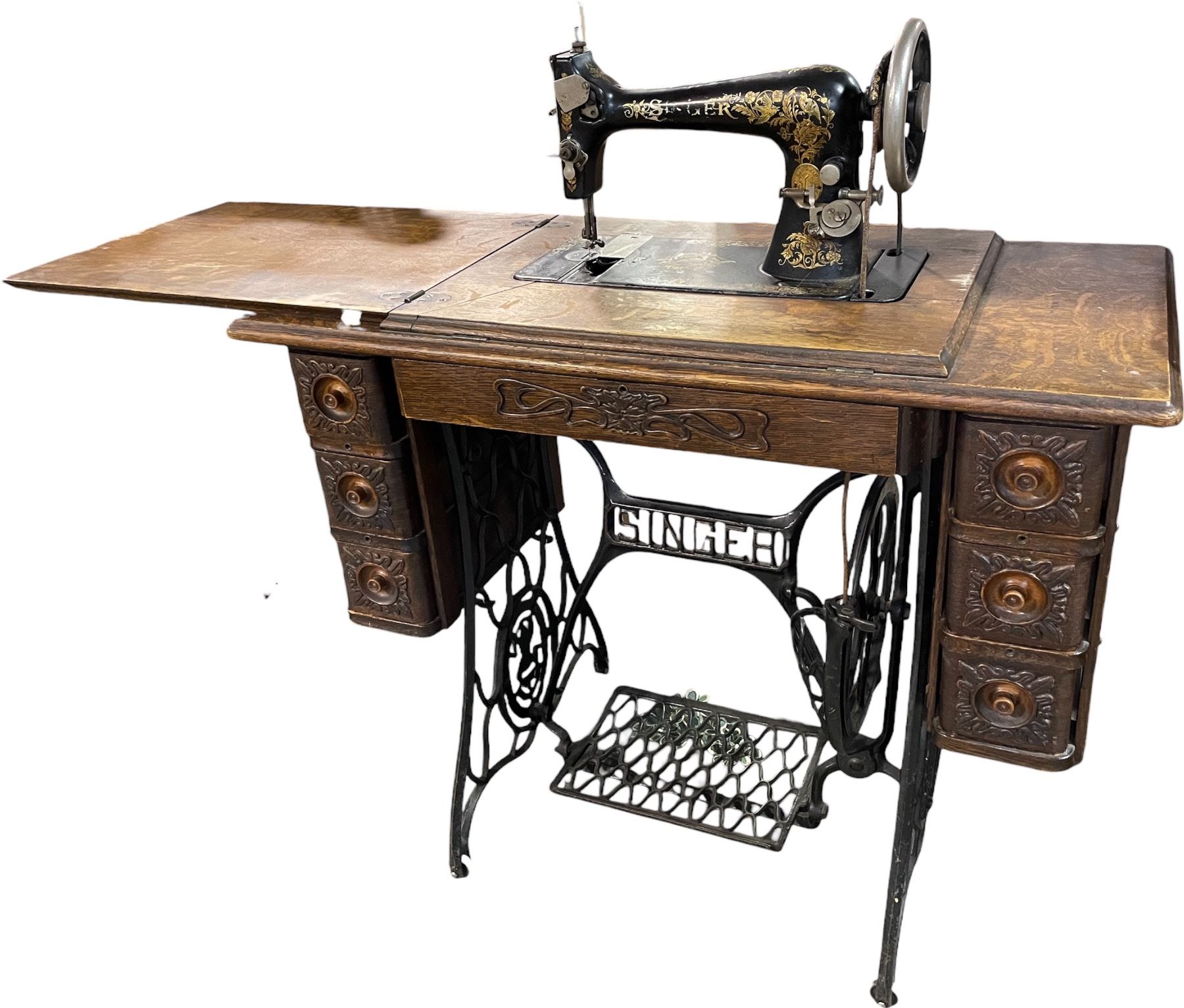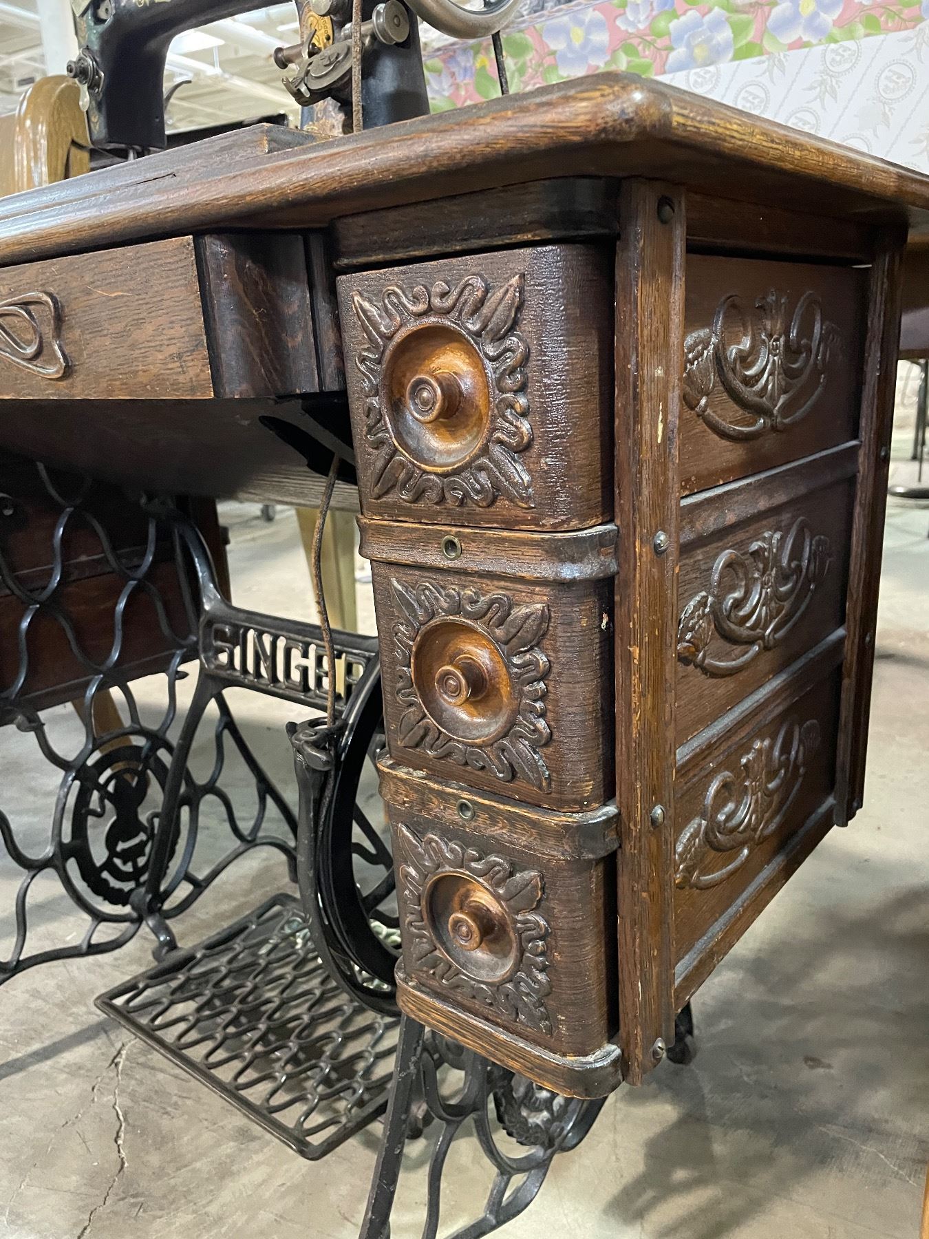 Vancouver - Antique Singer Treadle Sewing Machine Set w/ Cast Iron Base