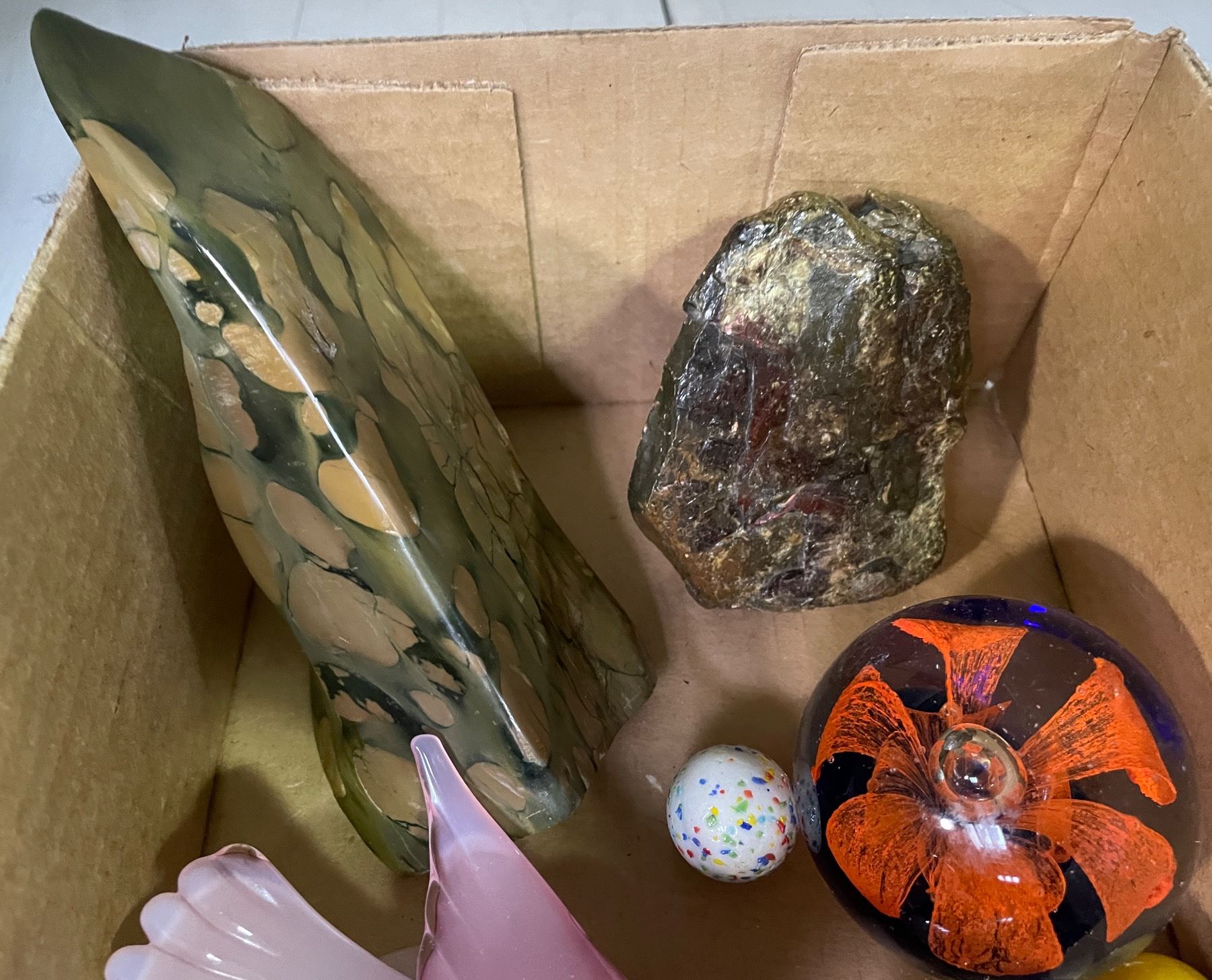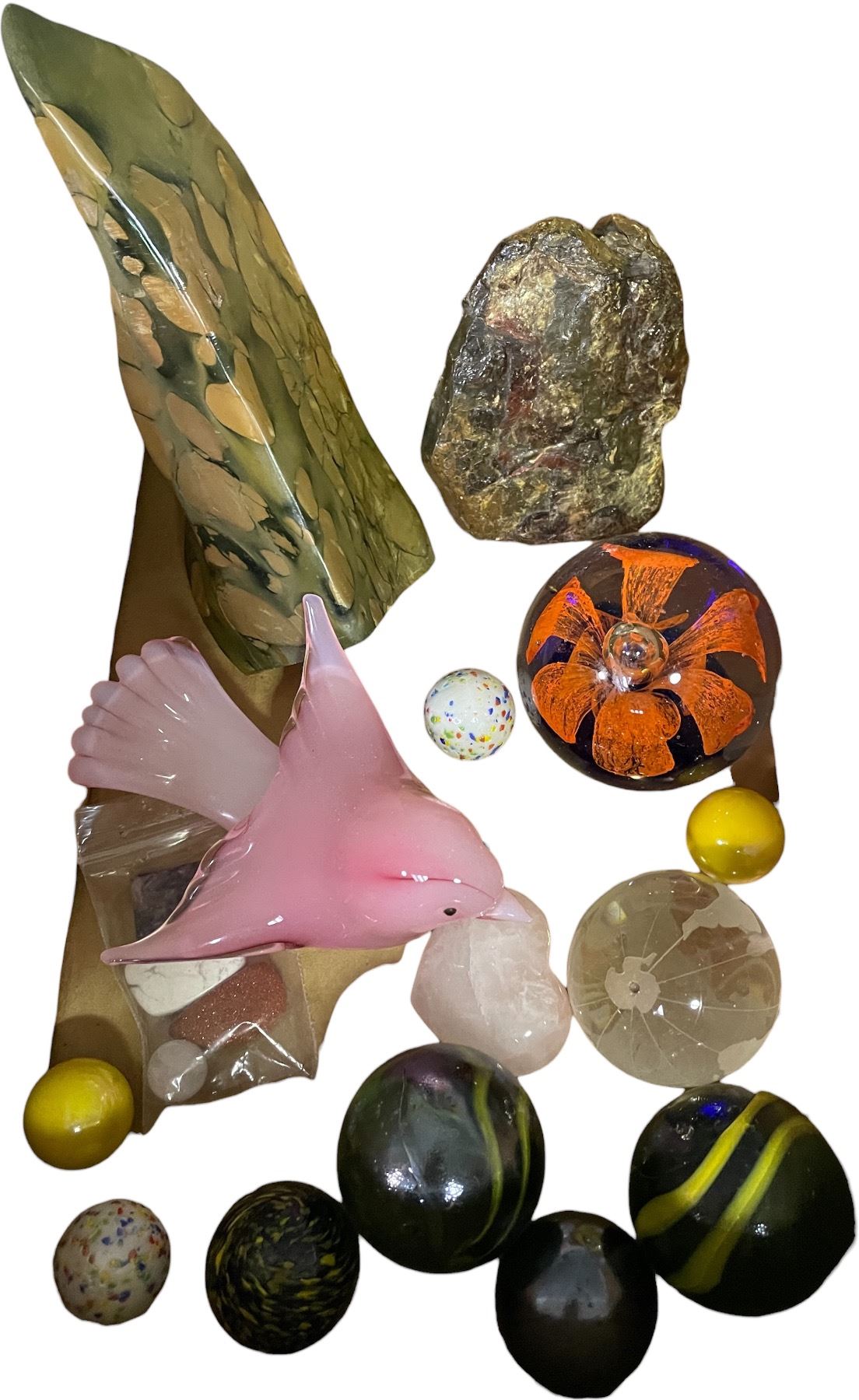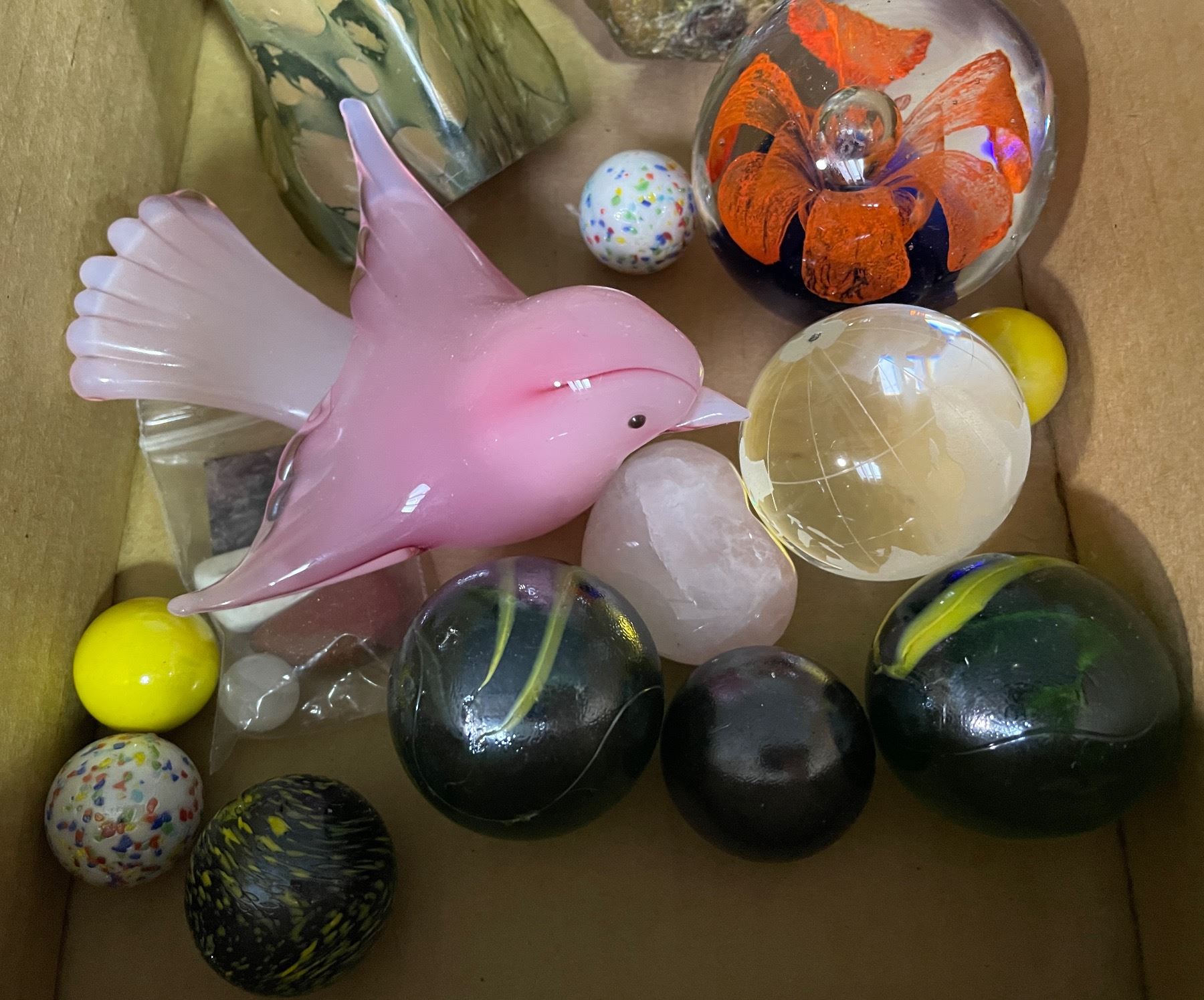 Vancouver - Box full of Vintage Glass & Stone Carved Figurines, includes Pink Bird & More