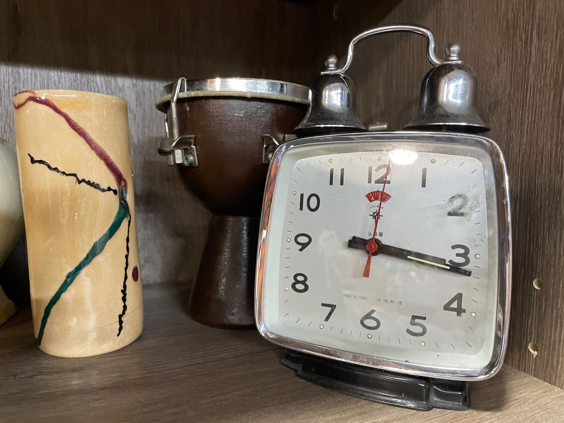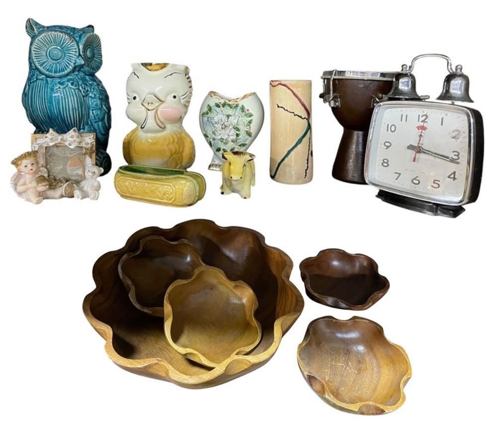 Vancouver - Group of assorted Vintage Decorative items includes Polaris Mechanical Alarm Clock, Figurines, Wooden Bowl Set & More