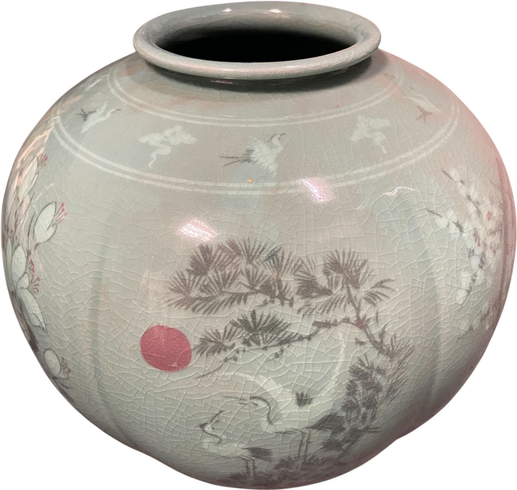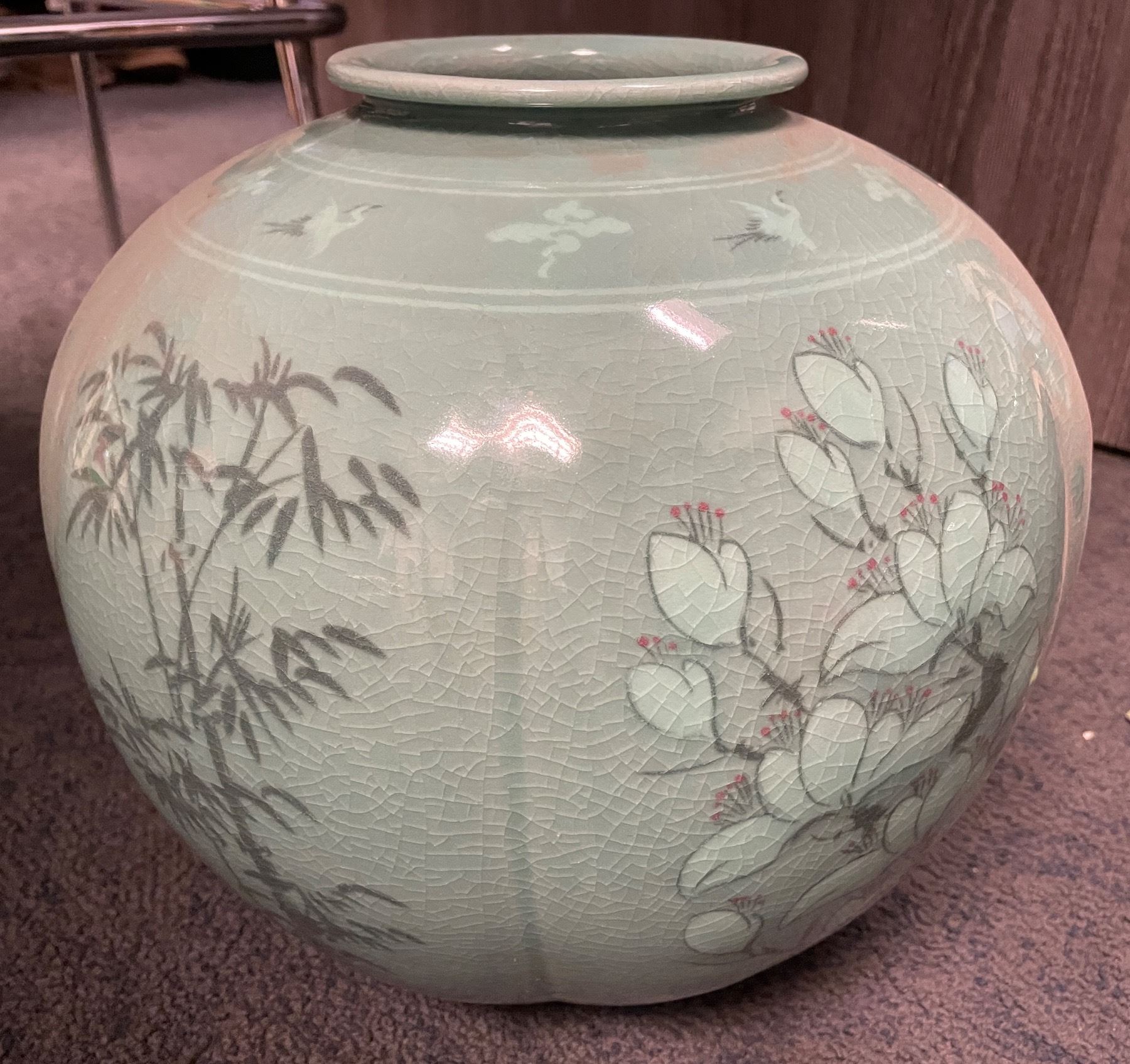 Vancouver - Large Korean Celadon Ceramic Jar, H12"