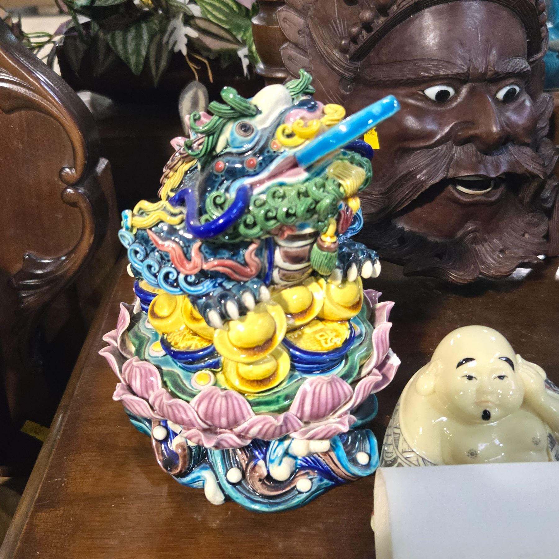 Vancouver - Vintage Chinese Assorted Decoration Items, includes Feng Shui Money Frog Figurine, Wooden Hand-carved Mask & More