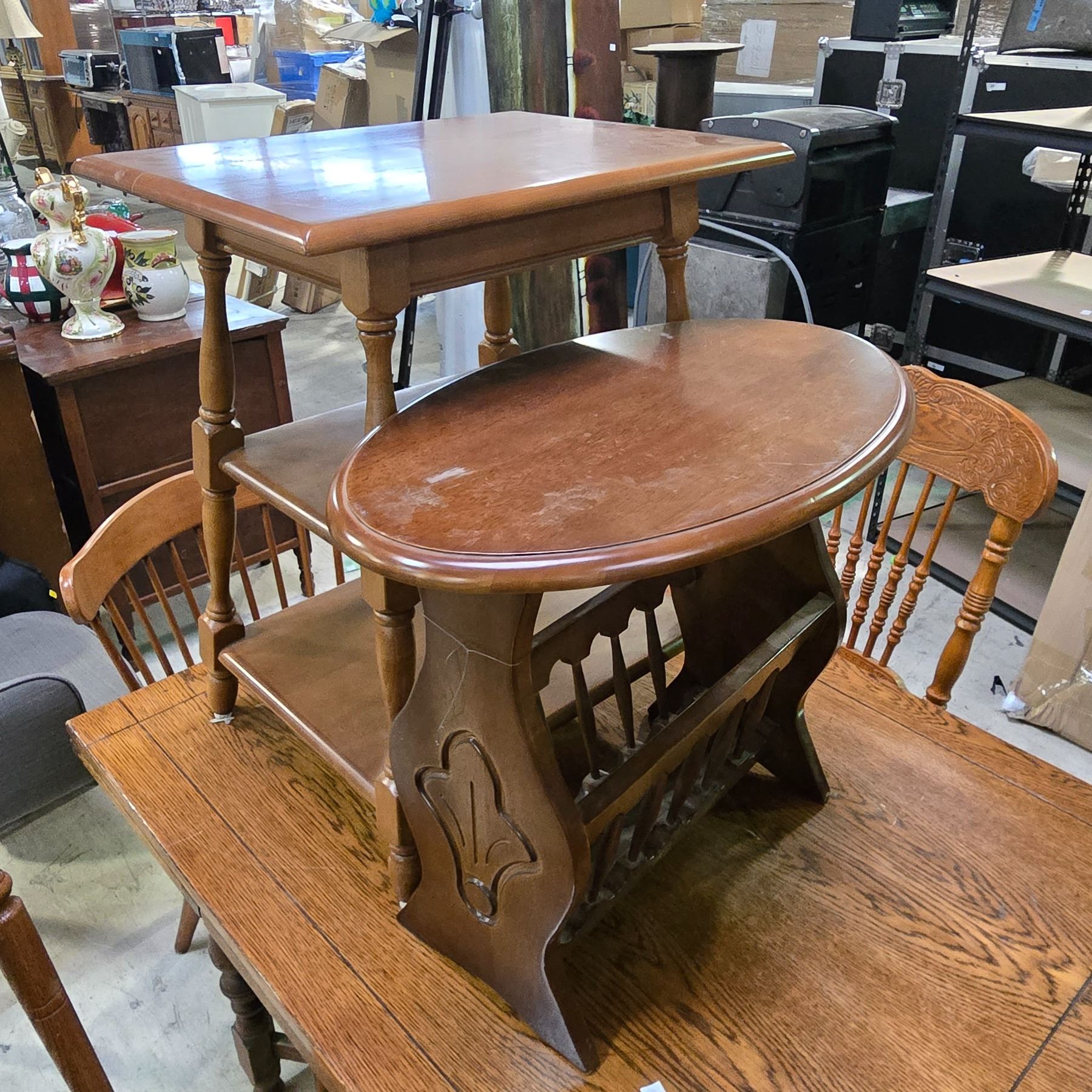 Vancouver - Vintage Farmhouse Wooden Extendable Dining Set, includes 4 assorted Chairs & 2 Side Tables (table approx. 40" x 42" x 30"